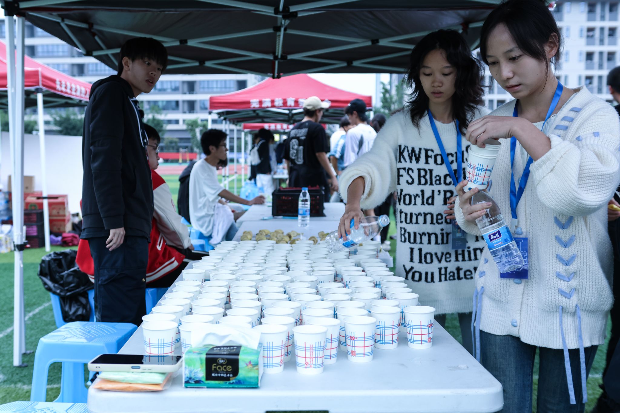 此次“FUN肆跑·纷彩现”校园跑活动,以其独特的魅力和创新精神,精心打造了四大服务板块,全方位满足参赛者的需求,确保活动顺利进行——医疗区:我们深知健康安全是活动顺利进行的前提,我们在此配备了持有重庆市红十字会应急师资的专业老师并装备必要的医疗设备,为参赛者提供即时的医疗救治和健康咨询服务。拉伸区:专业校队队员指导参赛者在赛前赛后进行科学的拉伸运动,帮助肌肉放松,提高运动效果,降低运动损伤的风险。赛后休息区:长时间运动往往伴随疲倦,此时一个舒适的赛后休息区尤为重要。在这里,我们通过为跑者补给电解水,香蕉等营养物资保障身体血糖平衡缓解身体疲劳感。娱乐区:为了让校园跑活动更加丰富多彩,我们设有各种趣味小游戏、互动环节,为跑者在紧张氛围中找到轻悦之弦。开场环节里,模特社的成员们以一场别开生面的时尚秀,展示运动与时尚的完美融合,他们的步伐自信而优雅,为运动员们注入无限的动力。紧接着,说唱社的朋友们用他们独特的韵律和澎湃的热情,为即将踏上赛道的选手们加油打气。让我们一起沉浸在这场精彩的开场表演中,为马拉松选手们送上最热烈的祝福和最响亮的掌声,让这股能量伴随着他们一路向前,勇往直前!