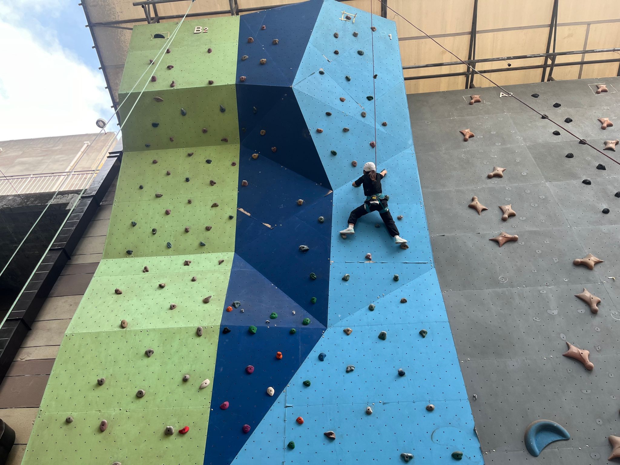 在攀岩馆,岩壁成为了队员们挑战自我的战场。队员们身着攀岩装备,手脚并用,寻找着最佳的攀爬路线,每一步都需要精准的判断和强大的力量支撑,所以强大的手臂力量也是攀岩训练的重点。