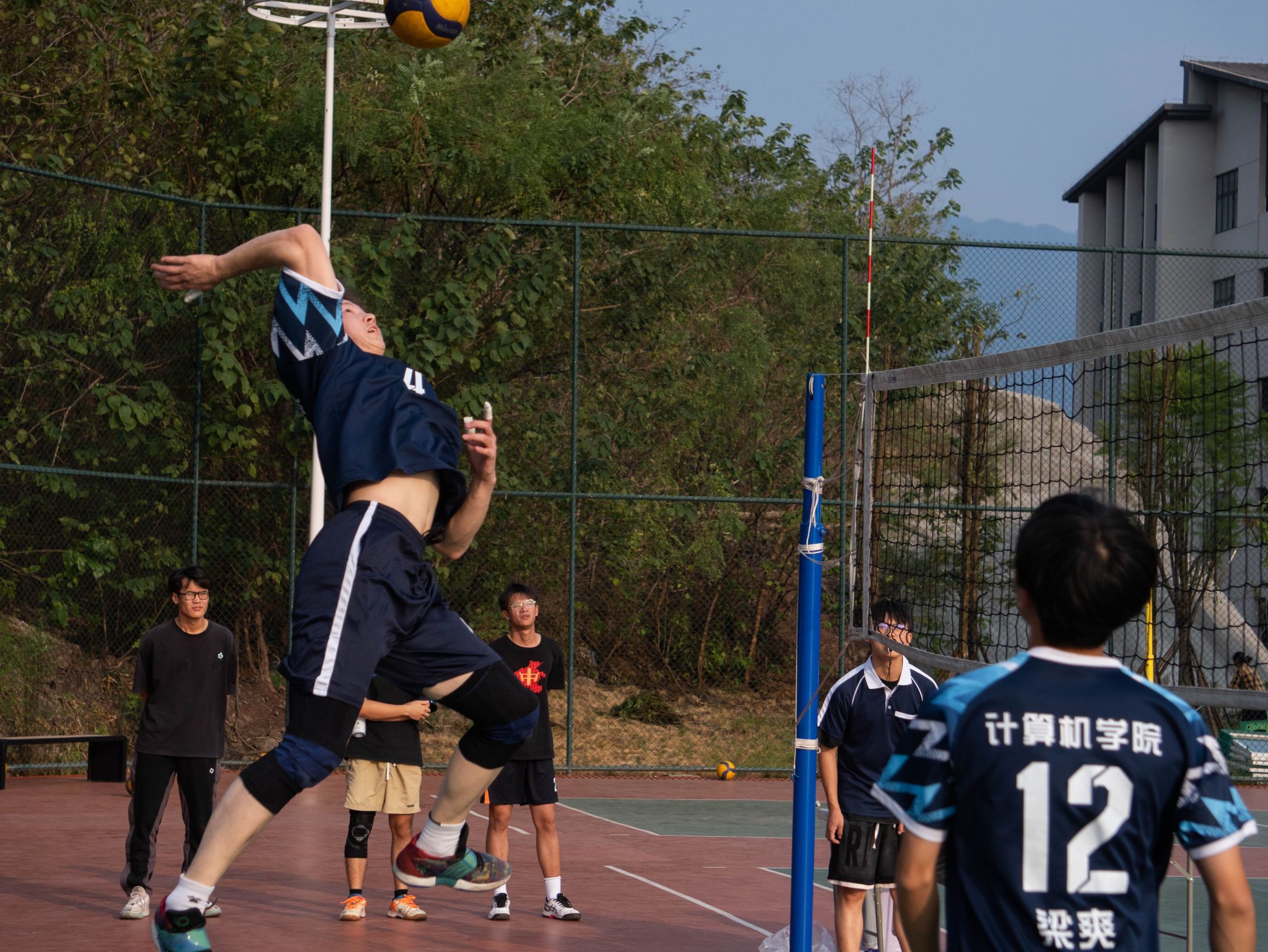 与此同时,男子第二比赛也同样精彩纷呈,两支队伍你来我往,展开了一场力量与速度的较量。最终,男子组的比赛以2:0的比分迅速定格。第一局的比赛尤为紧张,双方队伍都展现出了极高的竞技水平。计算机学院在比赛中一度面临挑战,但凭借队员之间的默契配合和关键时刻的稳定发挥,他们最终在险胜中拿下了第一局。这场胜利为计算机学院奠定了心理优势,也为他们后续的比赛打下了坚实的基础。