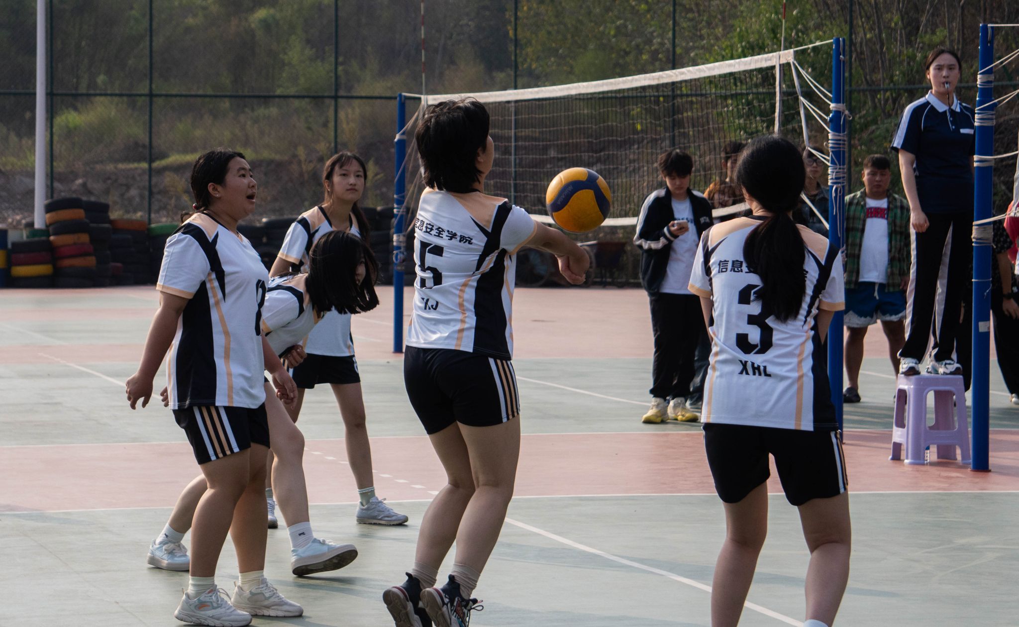 在女子决赛的激烈对抗中,双方队伍展现出了巾帼不让须眉的斗志,经过三局紧张刺激的比赛,最终以2:1的比分由信息安全学院拔得头筹。获胜队伍凭借坚韧不拔的意志和精湛的球技,在这场焦灼的较量中笑到了最后。