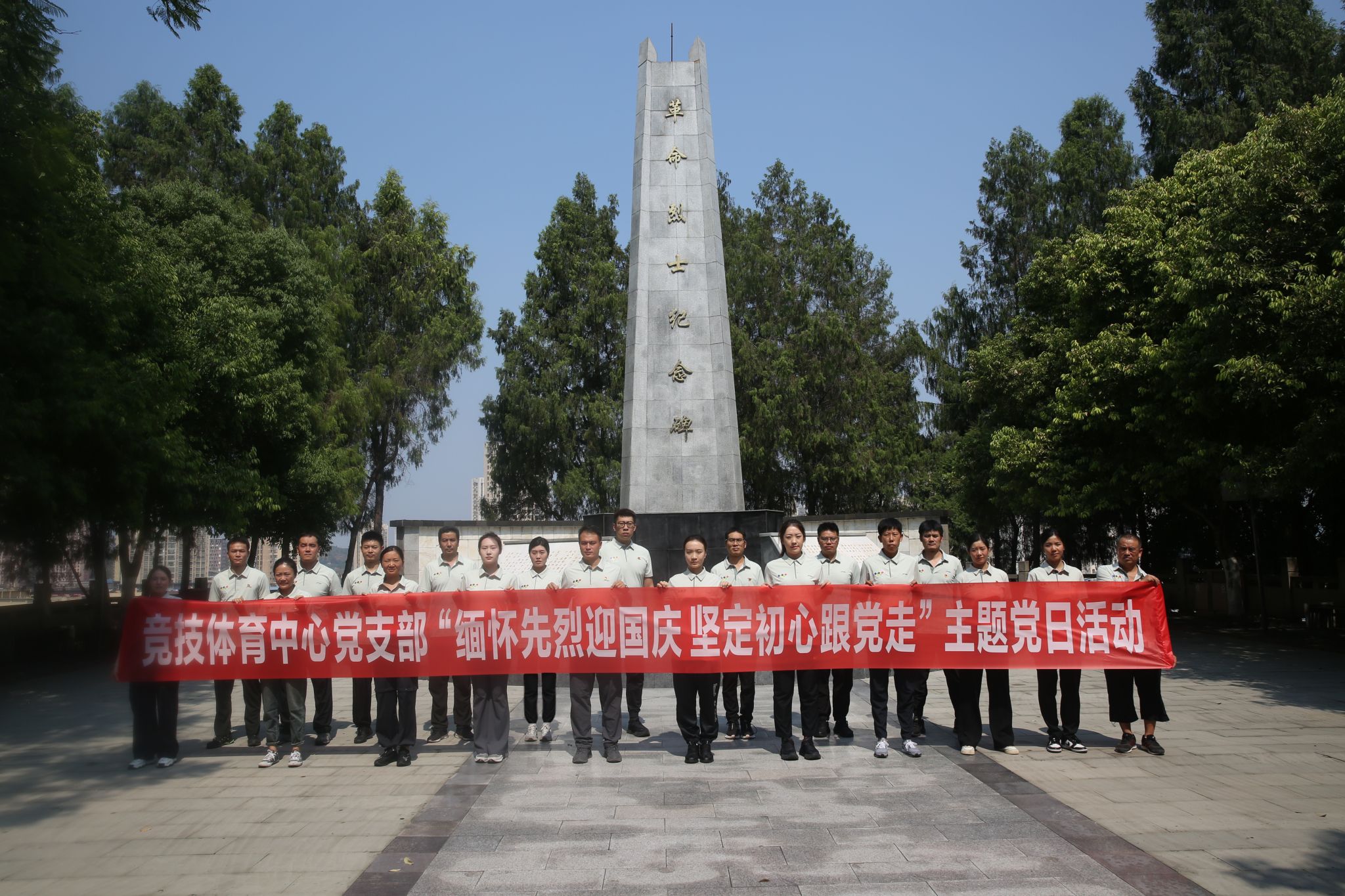 随着国庆佳节的临近,竞技体育中心党支部根据本部门实际情况于9月27日开展了以“缅怀先烈迎国庆·坚定初心跟党走”为主题的活动。此次活动旨在通过回顾革命先烈的英勇事迹,激发全体党员的爱国情怀,增强民族自豪感和历史使命感,同时引导大家在新时代的征程中,不忘初心,牢记使命,为实现中华民族的伟大复兴贡献力量。竞技体育中心部分党员、入党积极分子和已提交入党志愿书的20余名教师参加本次活动。