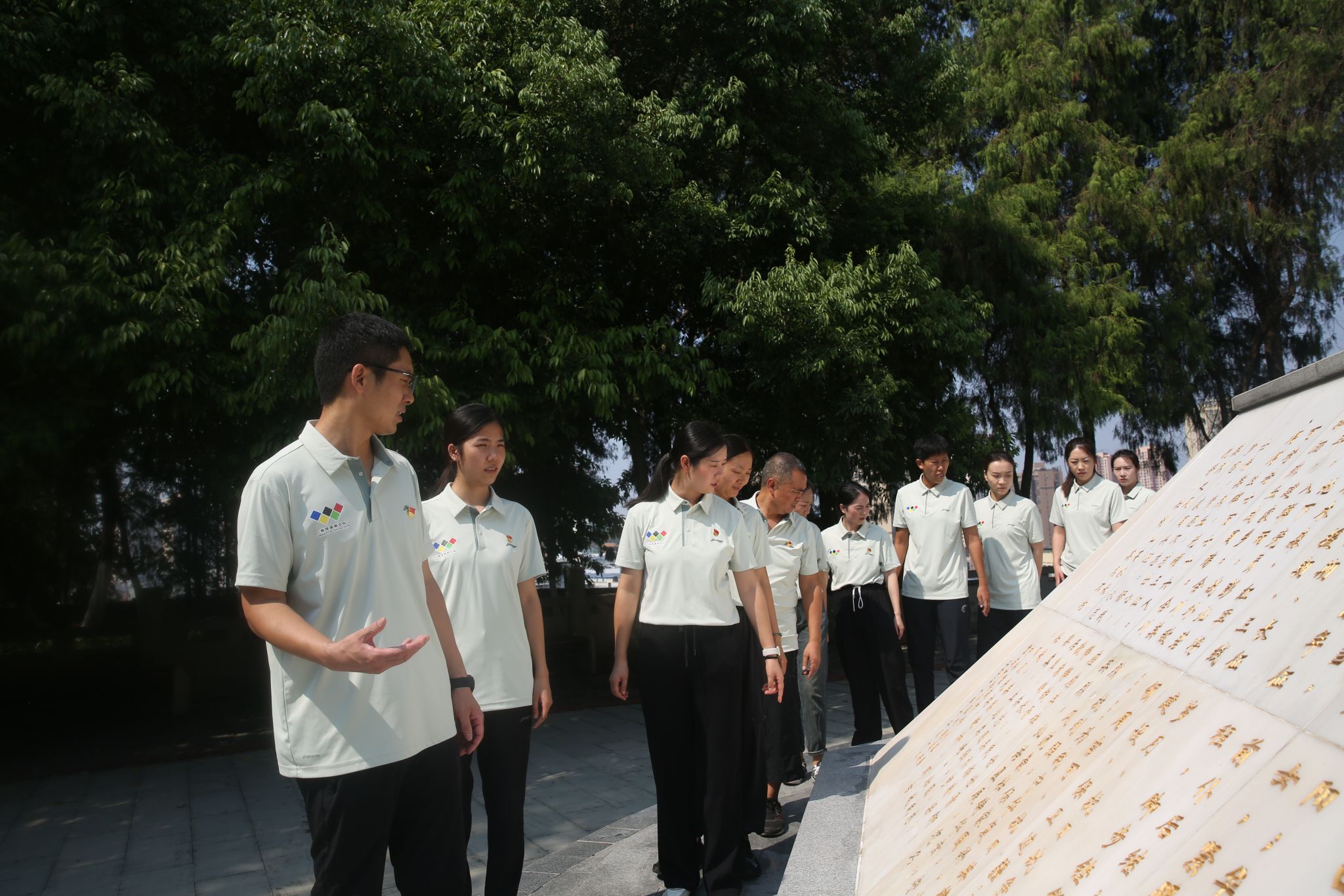 一个个烈士的名字刻在碑上,更是刻在我们骨子里,“抗日战争”“解放战争”“抗美援朝”“对越自卫反击战”等大事记,蕴藏的是一个个可歌可泣的革命故事。全体教师在书记的带领观摩下,仿佛再次回到了那战火纷飞的战争岁月,切实感受着革命烈士坚守初心、勇于斗争的英雄情怀。