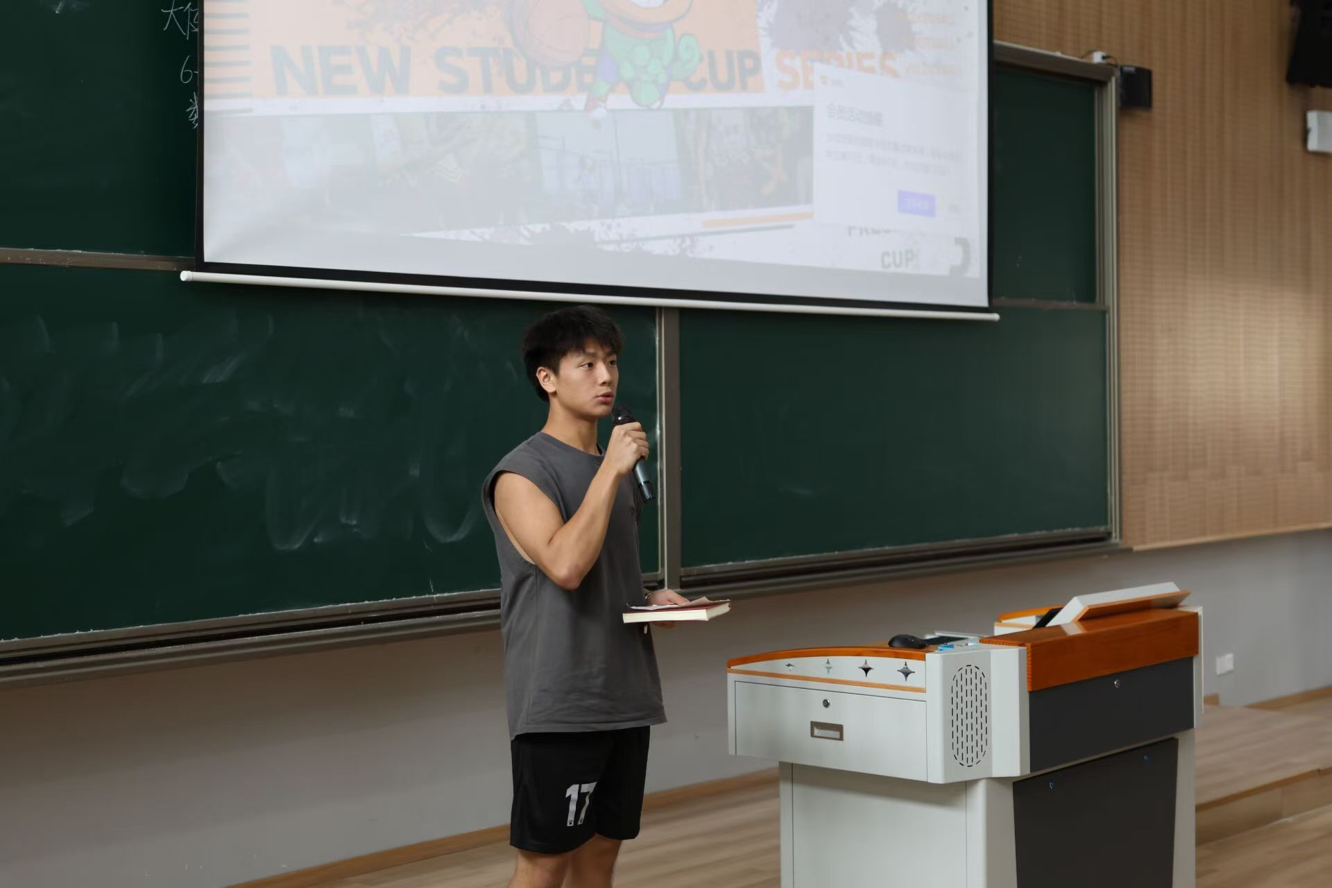 “新生杯作为我校的一项传统体育赛事,旨在丰富同学们的校园生活,提高同学们的体育素养。希望大家在比赛中赛出风格、赛出水平,展现新时代大学生的风采。”随着主持人作最后总结发言。至此“新生杯”系列赛揭幕战正式开始。