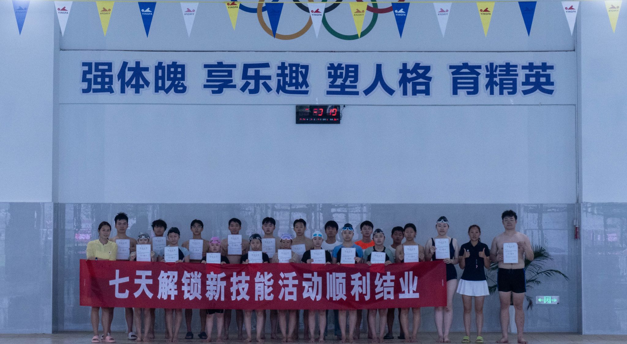 虽然活动已落幕,但游泳的热情永不退却。游泳,就像一颗种子,已深深植根于每位学员的心中,静待下一次的成长。愿学员们在这次课程中解锁的游泳技能,能化作人生泳道上的勇气和智慧,继续勇往直前,不断探索,不断成长,直至触及梦想的彼岸。游泳,不仅是一种运动,更是一种生活态度,一种永不放弃的精神。让我们携手共“泳”,迎接更加精彩的未来。