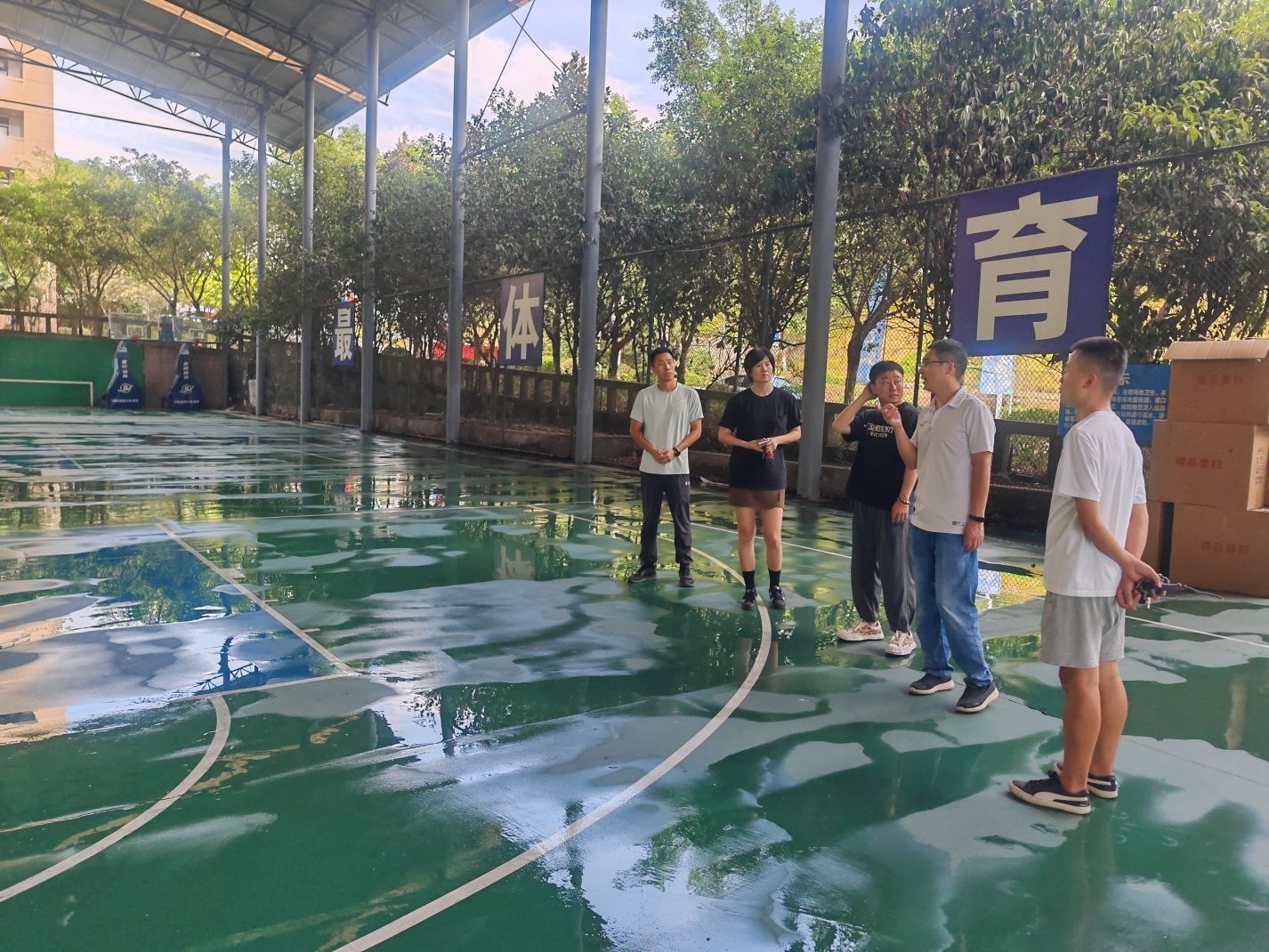 为做好新学期开学准备工作,排查全校体育场地安全隐患,确保体育教学、体育训练、学生课外锻炼及其他群体活动有序开展;8月26日下午,竞技体育中心副主任郭帅及竞技体育中心各部主任一起对全校体育场地及设施进行了全面检查。