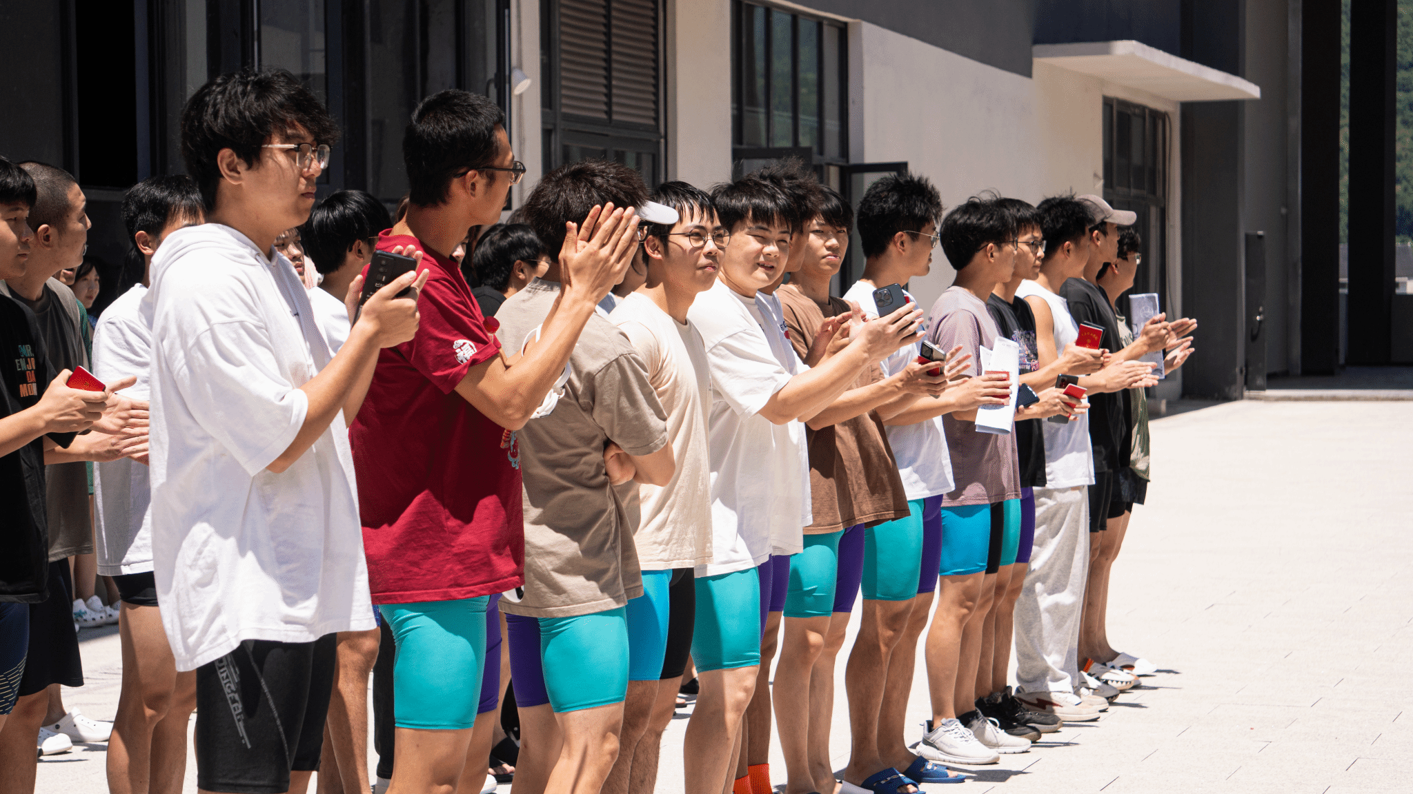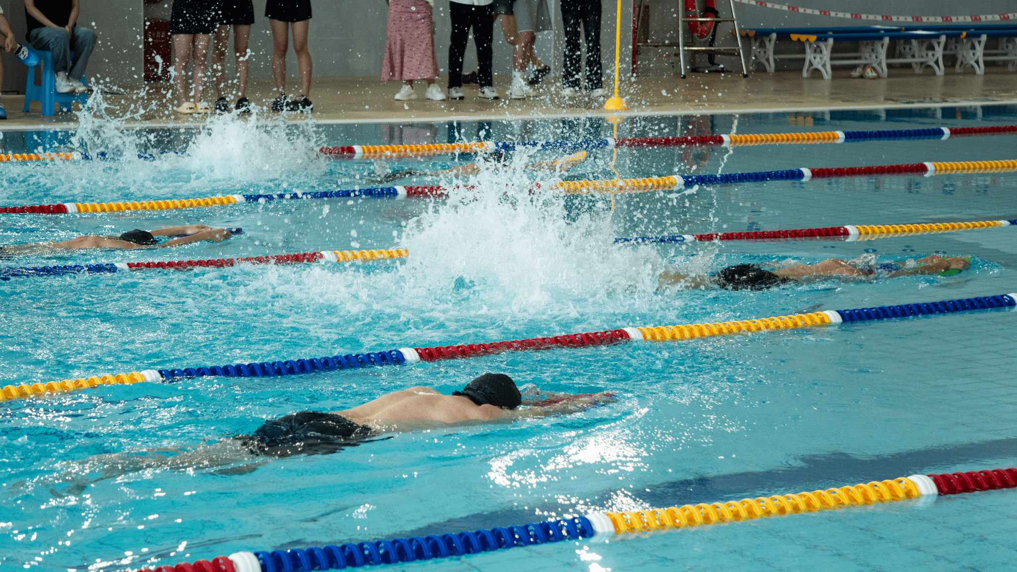 此次比赛设置了男子和女子多个项目,包括自由泳、蛙泳、以及接力混合泳等,吸引了九个二级学院共100余名学生参与。下午14点,选手们于星池游泳馆外相聚。头顶烈日,激情澎湃,选手们以满怀信心之势,期待接下来的比赛与挑战,眼神中透露出对胜利的渴望,对自我超越的执着。
