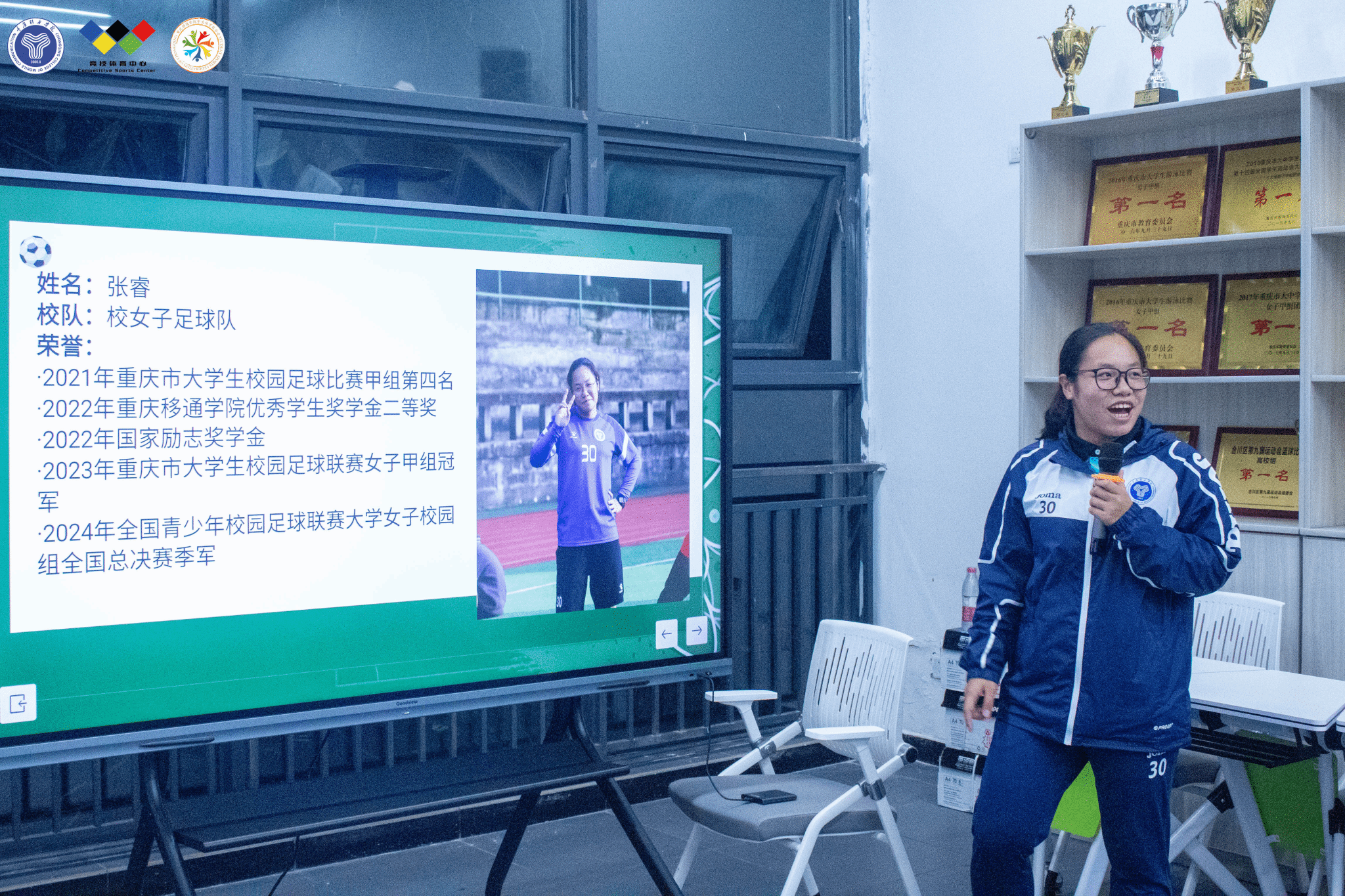 会议伊始,竞技体育中心刘玉林主任回顾分享了近期体育竞赛各支队伍的优异表现:我校啦啦操队、铁人三项队在全国赛场上夺冠,我校乒乓球队、武术队在重庆市大学生比赛中获团体第一,特别是这次校女足队在全国赛场上的夺目绽放,不愧“铿锵玫瑰”的称号!这次我校女足勇夺全国季军的瞩目成绩,为重庆争光更为移通争光……!每场比赛总是艰难的,刘主任肯定了各支队伍及教练员们的辛苦付出和取得的骄人成绩。他指出,在学校领导的大力支持和指导下,我校代表队均圆满、高质量完成了各项工作,创造了卓越成绩,他鼓励大家继续努力,为中心的建设发展贡献力量。