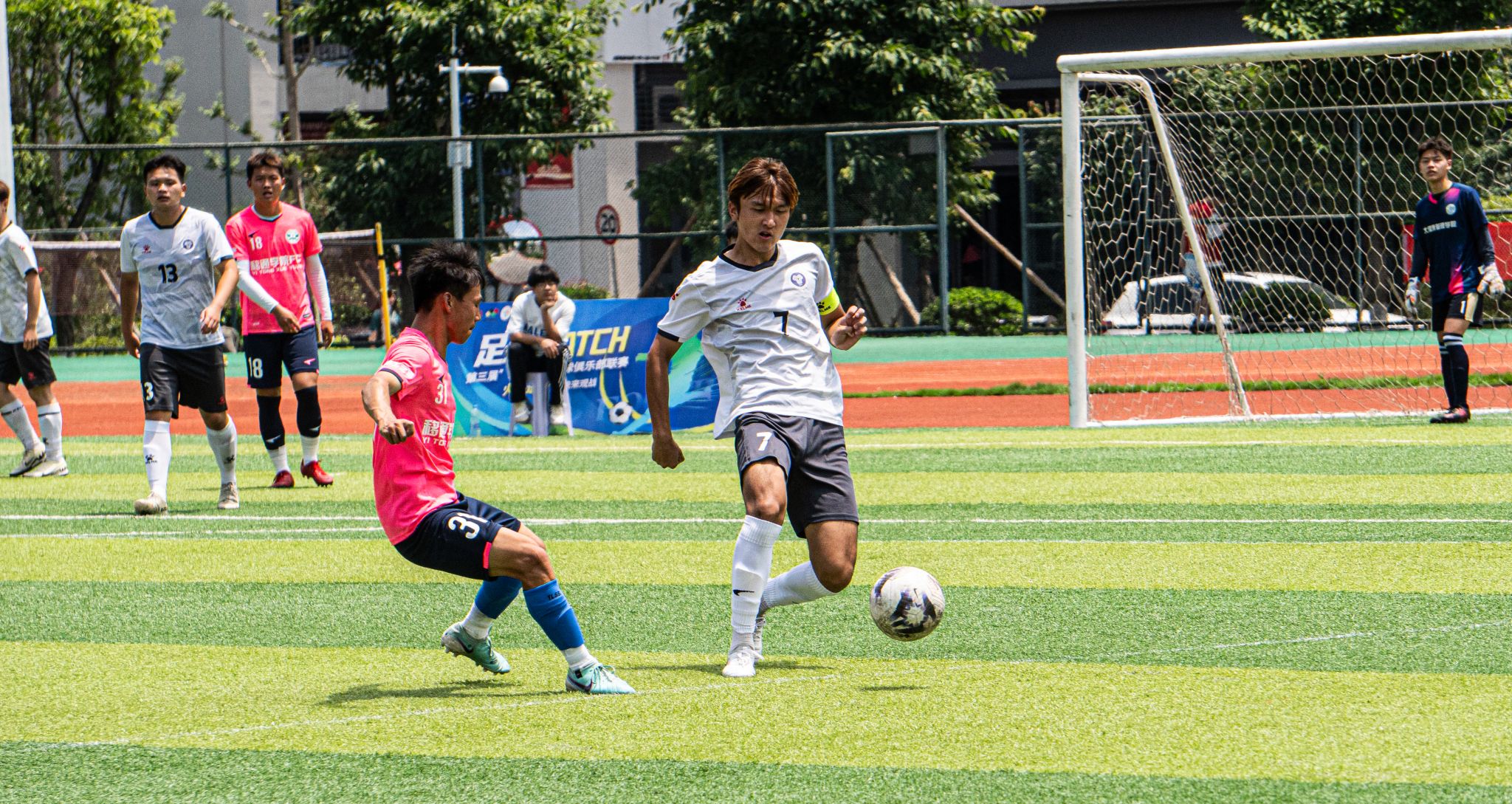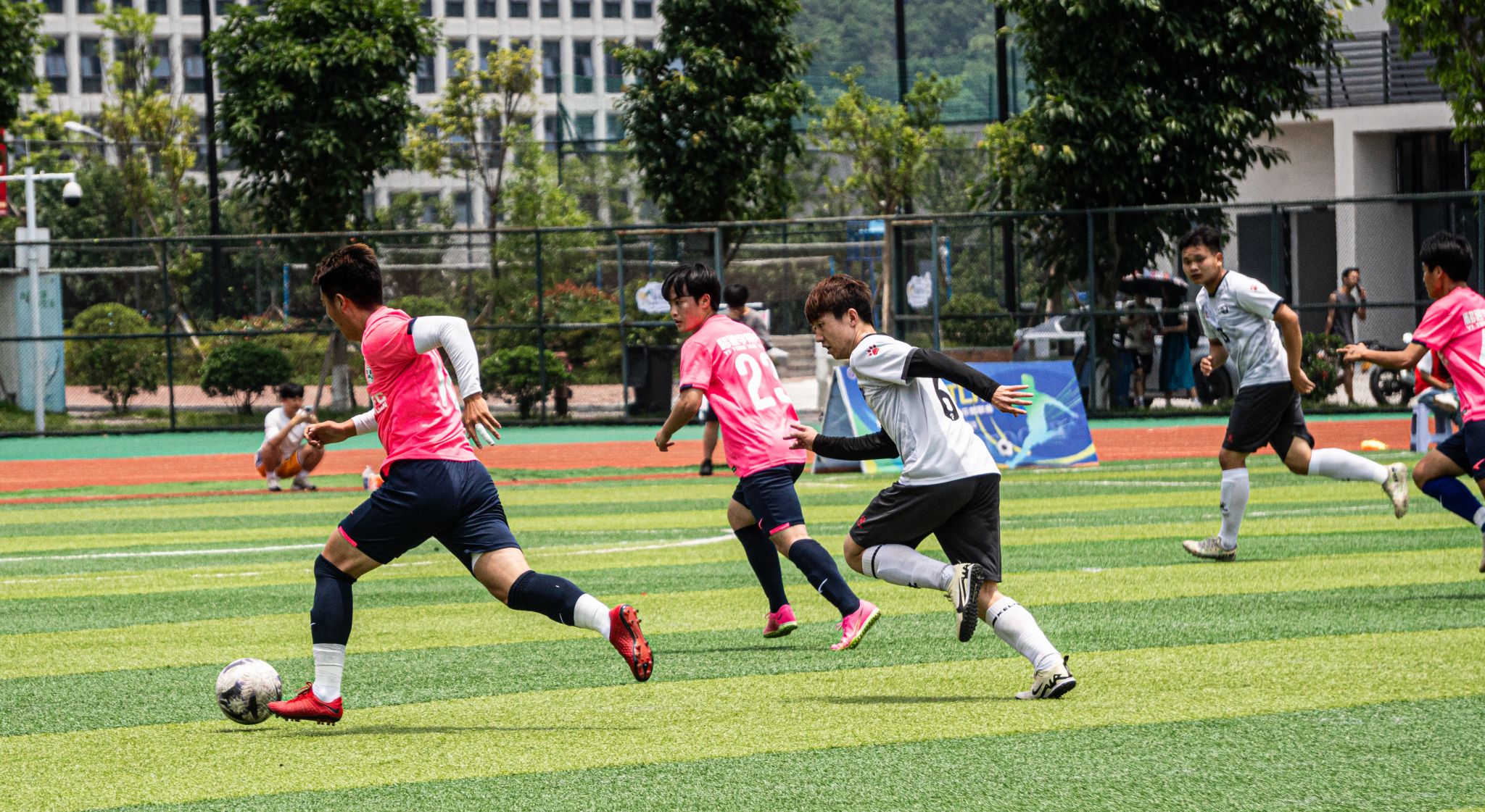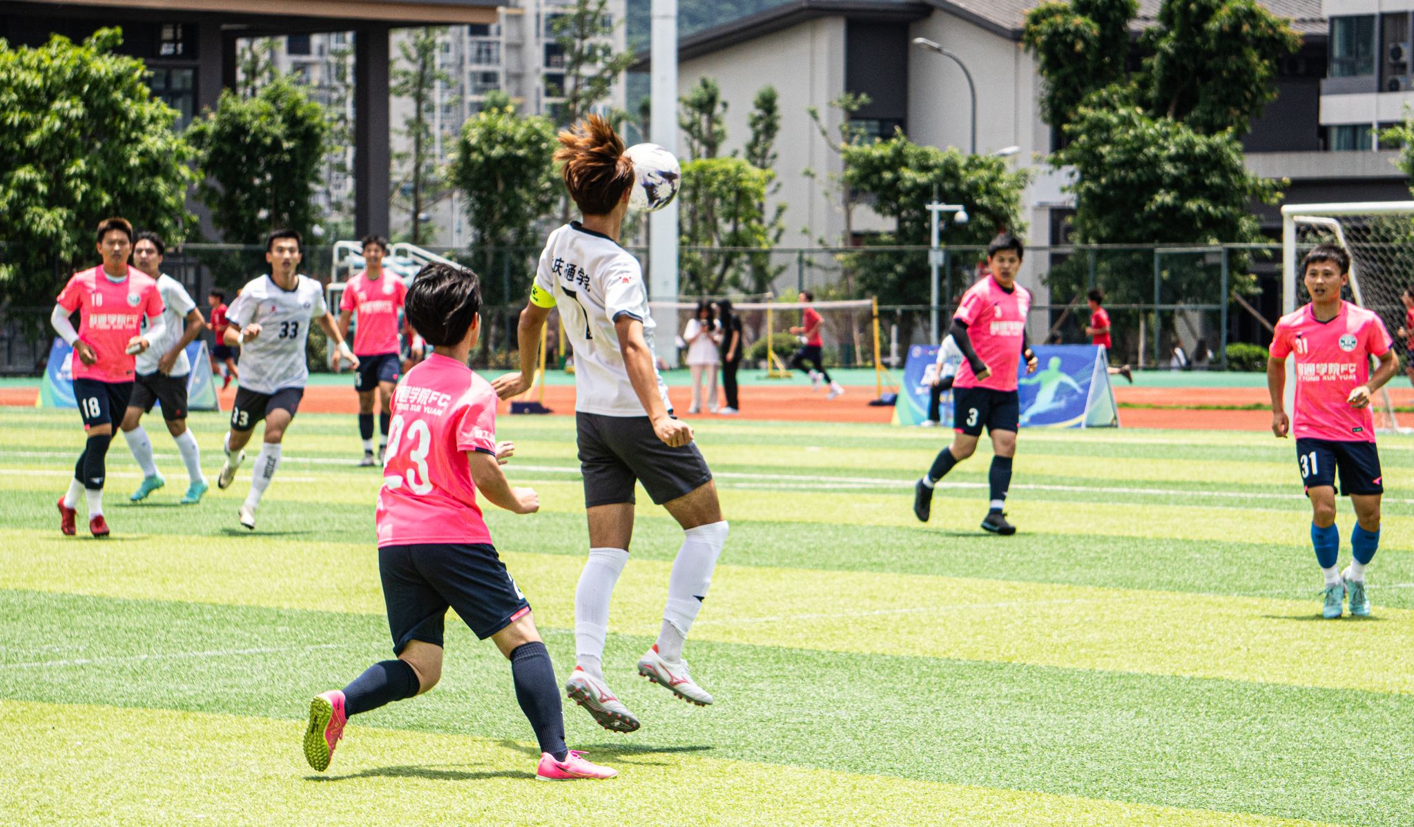 阳光洒在球员的肩膀,梦想在碰撞中辉煌。热爱足球的心、矫健的身姿、队友的默契、场外观众的加油呐喊,构成了这一时刻最青春昂扬的风景。即使这烈日再炽热,此时也在这一景象下逊色几分。