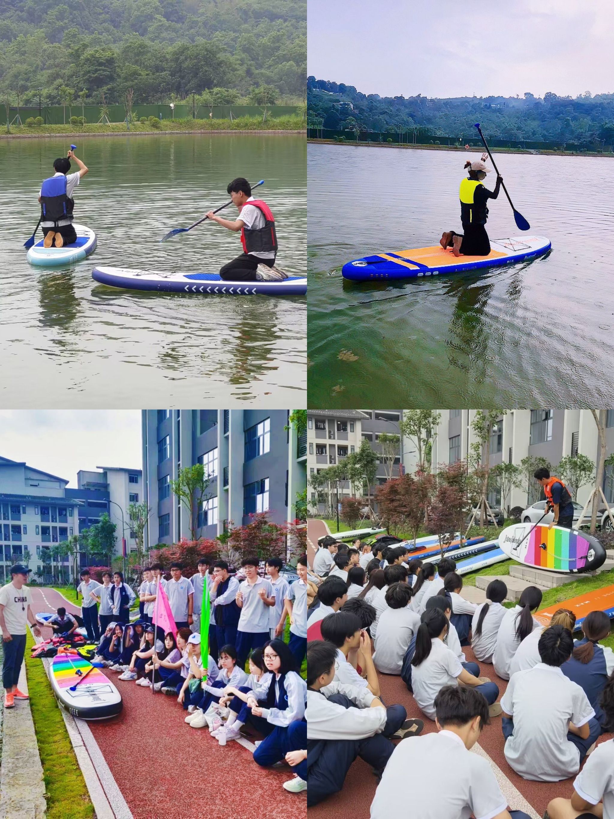 第三个项目:桨板。在教练详细讲解和指导后,同学们很快掌握桨板的基本结构、技巧与安全知识。一开始大家较为胆怯,害怕落水,但在同伴相互鼓励下,勇敢地踏上桨板,在水面自由滑行,感受水流与风的力量,十分快乐且自由。随着参与划桨板的同学增多,有同学落水,大家玩得越来越熟练和开放,从一个桨板上一个同学到后来几个同学同划一个桨板,有趣极了,还有同学互相比赛、“捣乱”,岸上同学看得欢笑不断,没下水的也消除了害怕,在同伴帮助下纷纷踏上桨板划动,感受到了桨板的魅力,教练也倍感欣慰。最终在项目中大家互相鼓励、帮助,共同克服了各种困难。此次桨板项目为同学们提供了亲近自然、挑战自我的机会,推动了水上运动的普及,让同学们接触并掌握新技能,感受到运动的快乐。