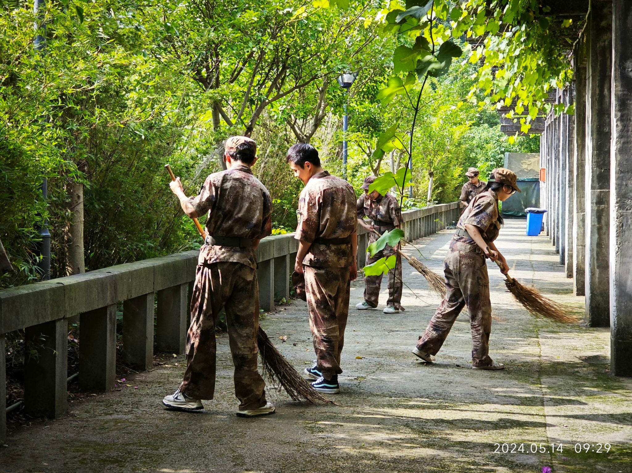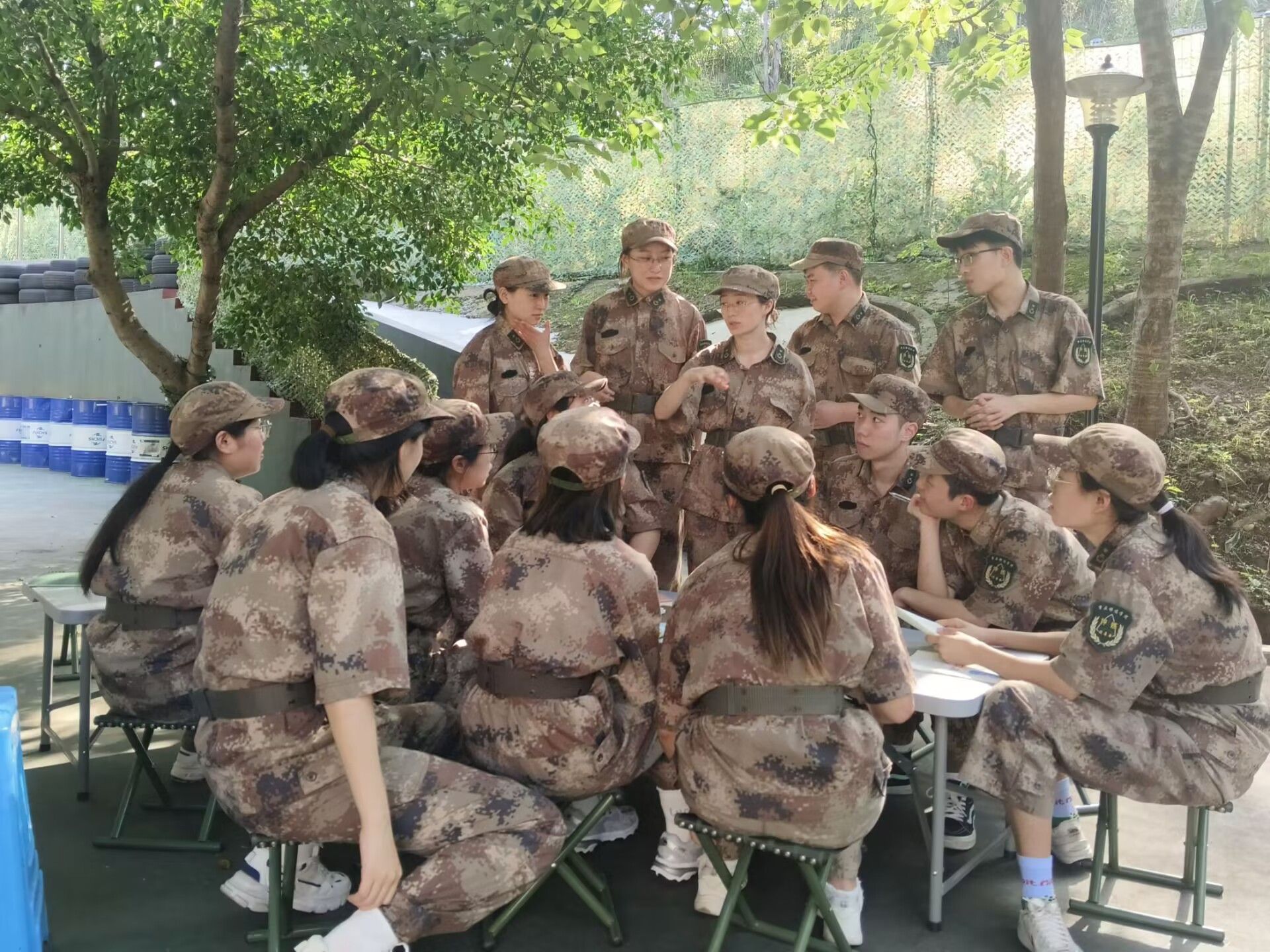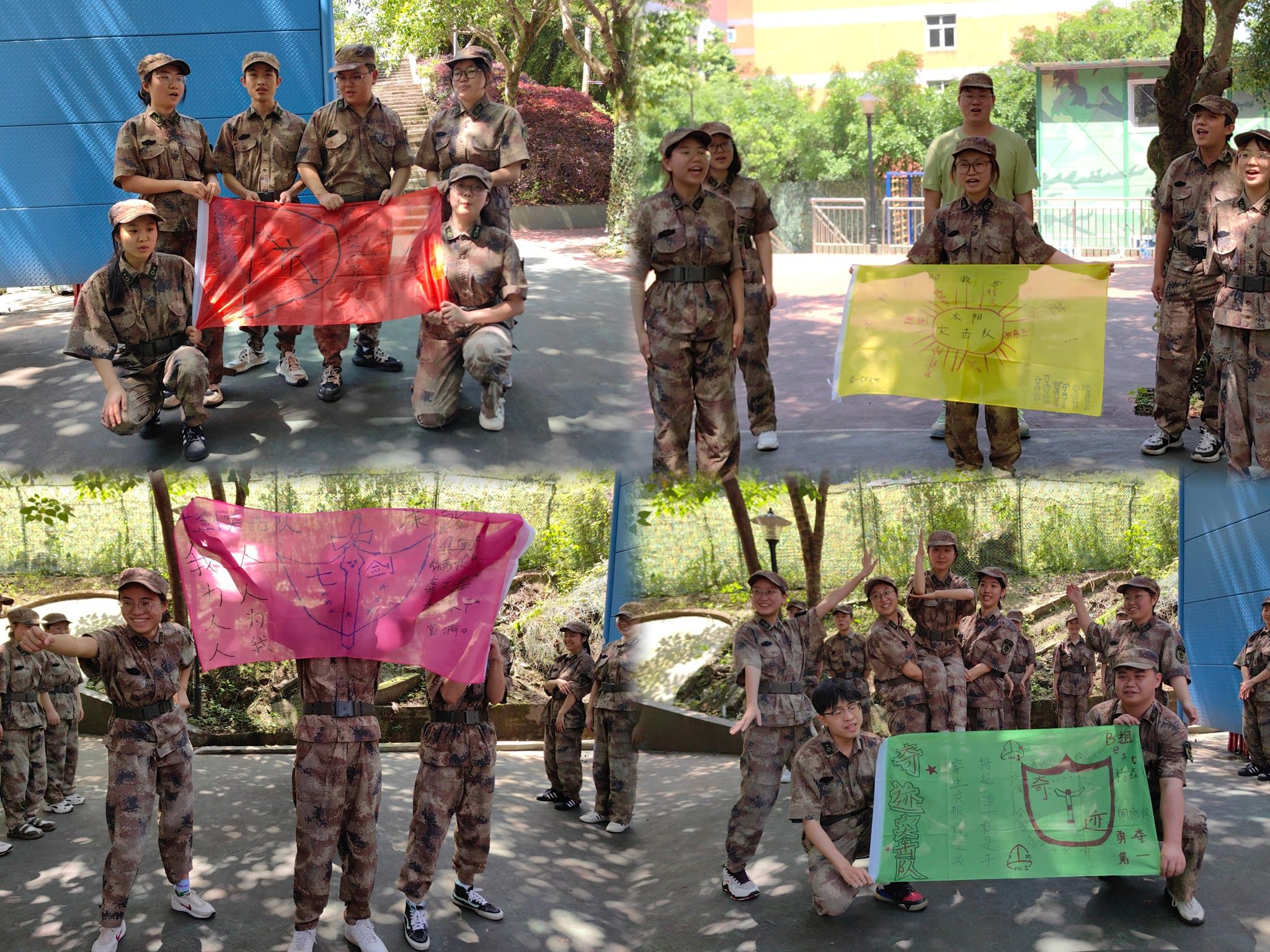 迎着五月的骄阳,15班的同学们踏上了淬炼之路。进入淬炼基地,李教练为同学们进行了规则事项介绍并让大家以不同方式互相了解,随后进行了分组。穿上漂亮的迷彩服,同学们迎来了第一项目-队列训练,在教练的动作示范下每个小组开始了短时间的训练,大家认真地听从组长的口令,无论是稍息力正,还是蹲下起立,每个小组都整齐划一,最后在项目比拼中第一组得到了第一名。大家并没有气馁,在第二项目-制造队旗文化中,每个人更是发挥出了自己的创造力及想象力,为各自的队旗增添风采,通过队形以及队歌口号每个组都展现出了不一样的青春洋溢。下午,七巧板游戏的到来让每个同学充满期待,在教练介绍完规则后,大家迫不及待地拿起自己组的任务卡和图形卡,但由于要求有限,大家不停的交换、借道具,全班在最后虽是取得了游戏较高分数,但是仍然存在某部分小组没有完成任务的情况,教练提到,七巧板需要全班一起努力才可以全部完成,如果不能顾全大局,很难取得成功,在教练的带领下,同学们认真反思,在接下来的项目-做武器中大家更是明白了协作的重要性,五根竹竿和一堆绳子在两大组同学的心灵手巧下变成了会投掷水球的武器,在制作过程中,同学们分工明确,在投弹成功的喜悦中同学们互相总结经验。晚上,体力项目让每个同学都身心疲惫,但是在这十几圈障碍跑中同学们互相帮助,奔跑在灯光下的每个人都在闪闪发光。