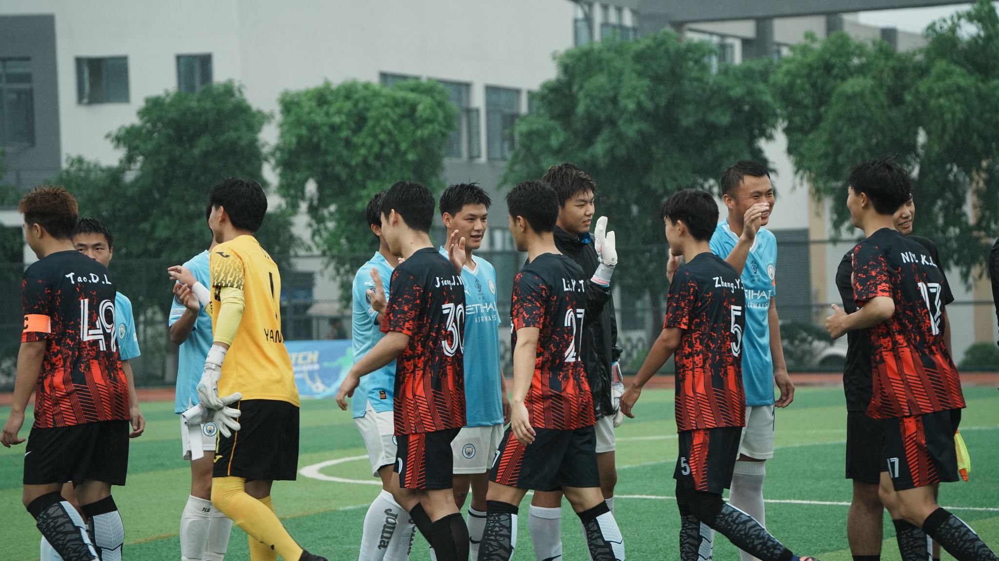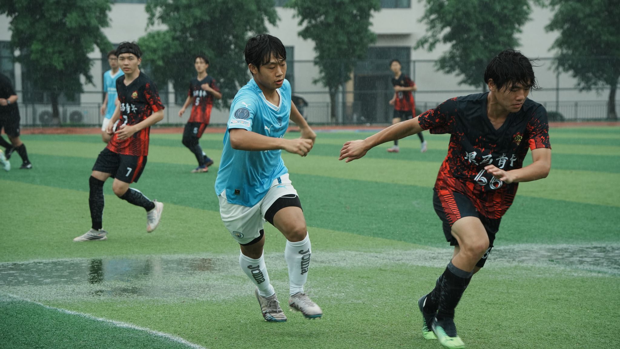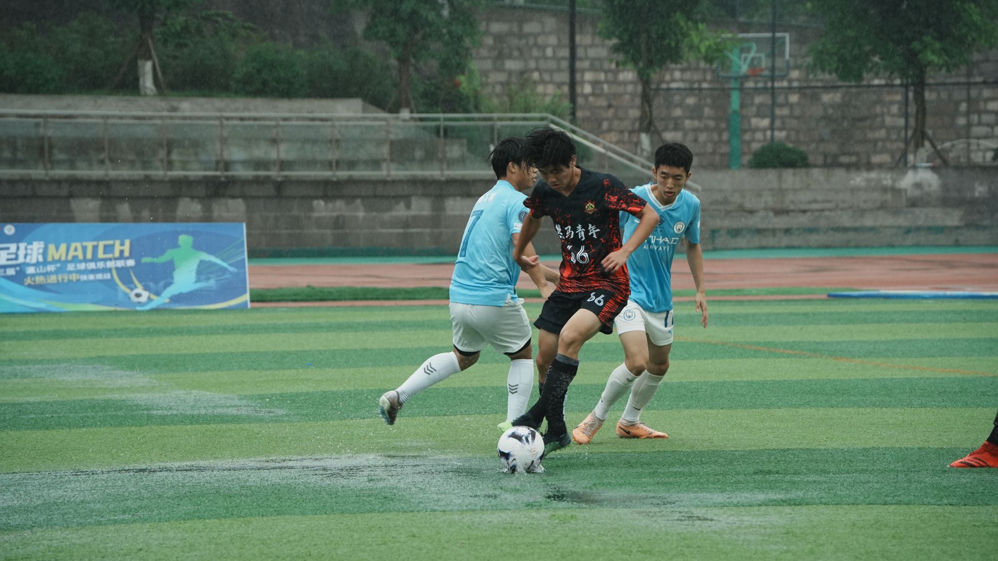 上半场的比赛如火如荼,山城银河战舰俱乐部展现出了出色的防守和坚定的决心,他们在信安黑马俱乐部的围攻下,力挽狂澜,以雷霆万钧之势将比分扳平。此时,球场上的气氛达到了高潮,雨水似乎也变得更加热情,像是在为这场激战加油助威。