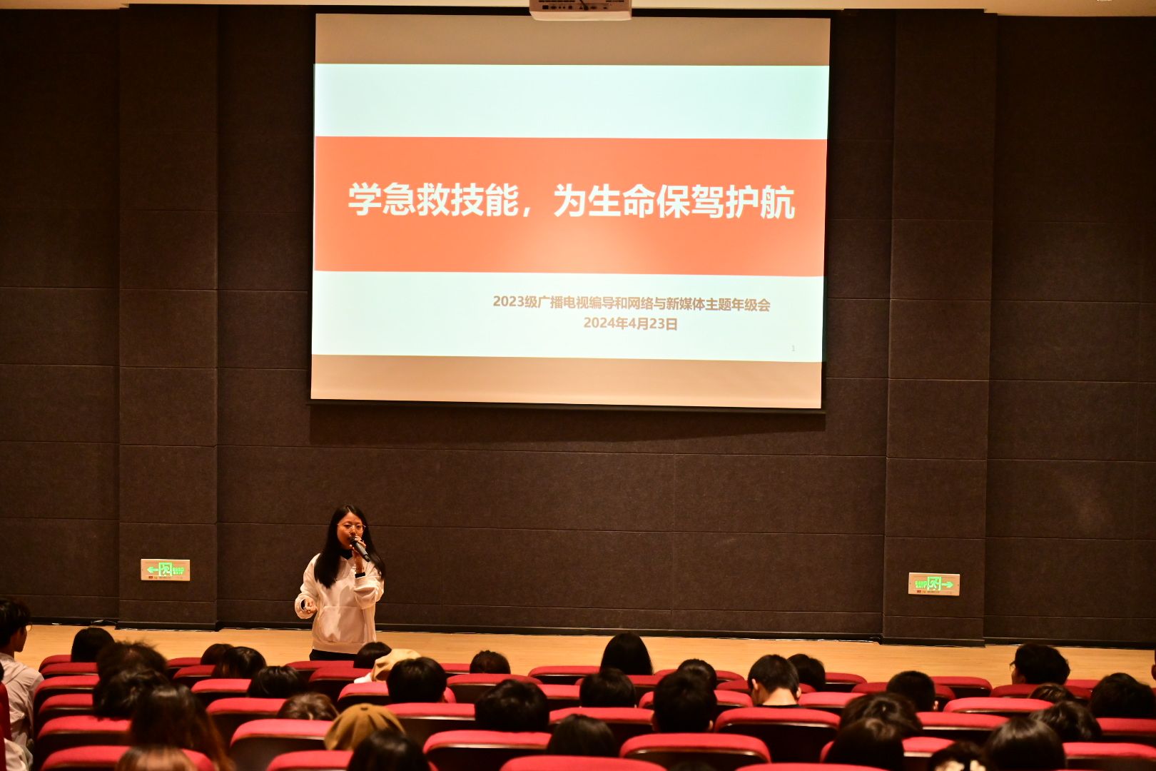 “居安思危,思则有备,有备无患”,安全是生命的保障,对于每个人来说都是至关重要的,为让同学们深刻理解安全的重要性,提升在紧急情况下的自救与互救能力,培养同学们的责任意识和担当精神,艺术传媒学院2023级广播电视编导与网络新媒体专业于2024年4月23日在六度空间105°学术报告厅举行了“学急救技能,护航生命之舟”的主题年级会,本次年级会邀请到辅导员黄小梅老师、营地教育中心的李青青教练作为嘉宾。