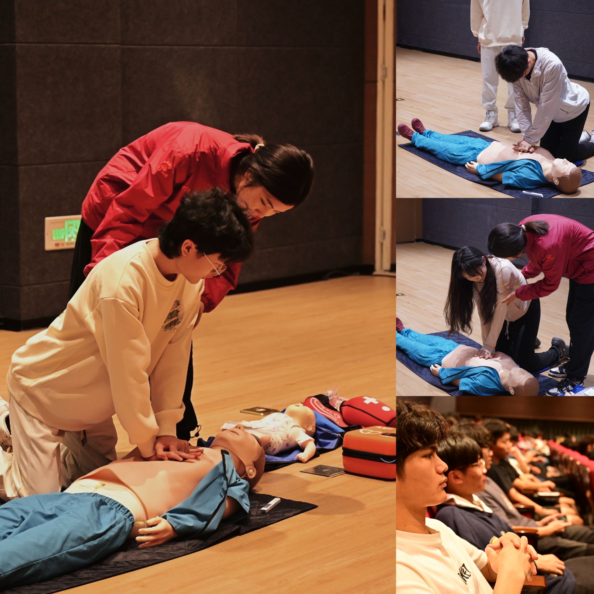 在李教练的耐心指导下,同学们也对心肺复苏术进行了模拟训练,并不断修正实际操作中的错误姿势,不仅掌握了这项基本的急救技能,还学会了如何在紧急情况下保持冷静,迅速作出正确的判断。