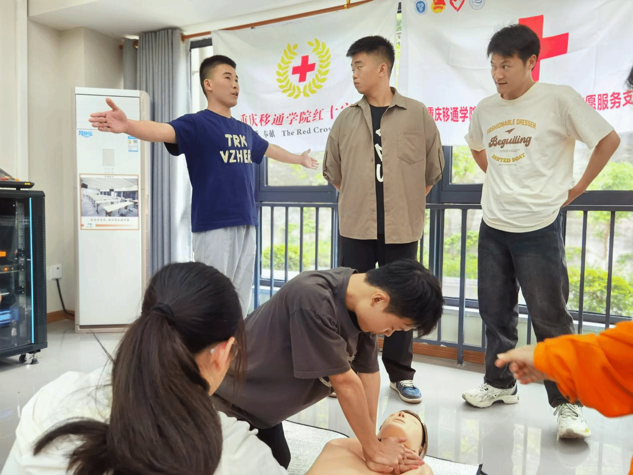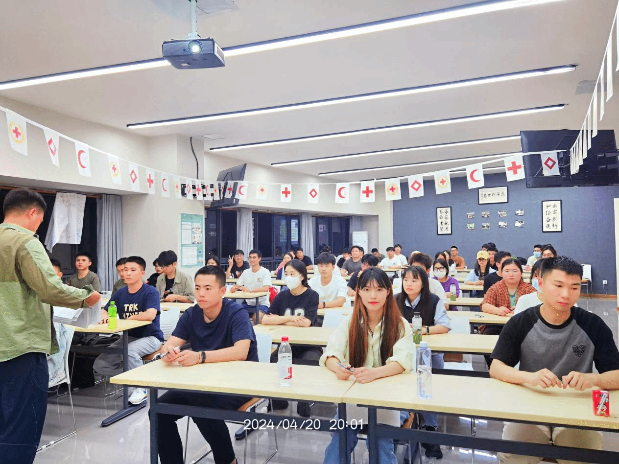 为进一步普及应急救护知识,增强师生自救互救能力,建设平安校园。2024年4月20日重庆移通学院红十字会联合重庆市合川区红十字会在南湖书院免费开展首期红十字初级救护员培训。经前期报名初审,本次培训学生37人,老师17人,由重庆市红十字师资、营地教育中心余青河、田威教练开展培训。