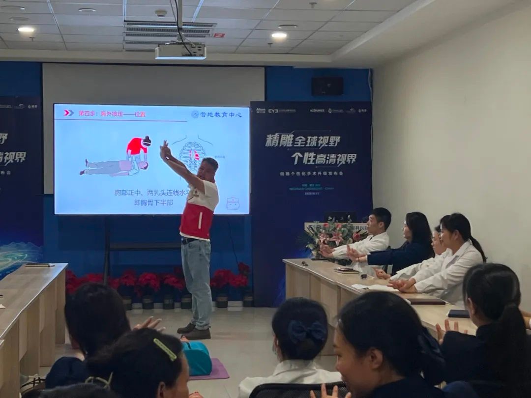 本次活动,重庆移通学院红十字会“救献”志愿服务专项支队为爱尔眼科医院的60余人开展了急救知识宣讲,大家都表示在活动中学到了很多。
