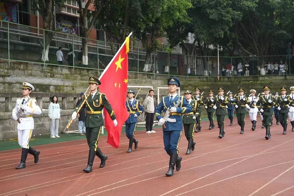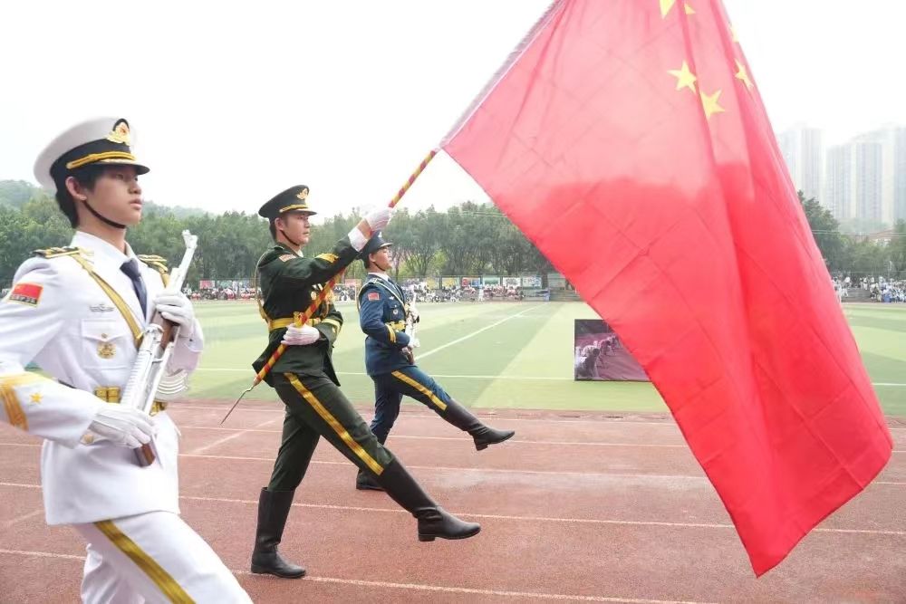 全校师生集合完毕后,升旗仪式开始,伴随着雄壮的《义勇军进行曲》,五星红旗冉冉升起。国旗的颜色鲜艳璀璨令人夺目,国歌的旋律慷慨激昂振奋人心,全校师生将在未来两天的运动会中突破自我,挑战极限,用青春挥洒汗水,谱写出属于移通学子的青春之歌。
