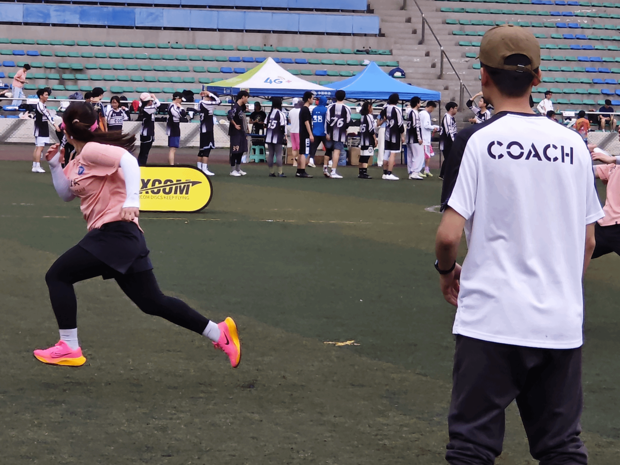 赛场上,由于我队的人数劣势,使得许多的队员不得不一直在场上比赛。飞盘比赛中,选手们必须不断的跑位,跳跃,冲刺,折返,出盘,断盘,这更是对于各位选手的巨大体能挑战。