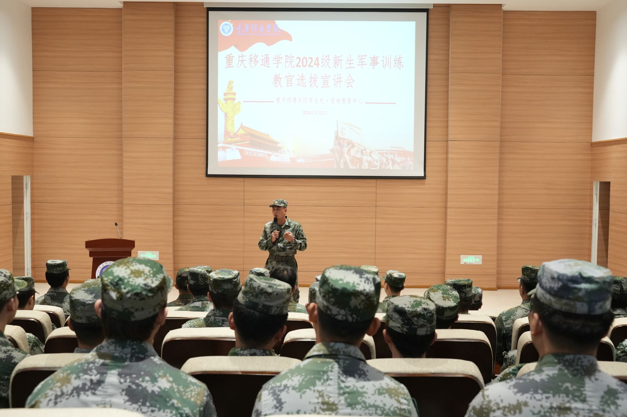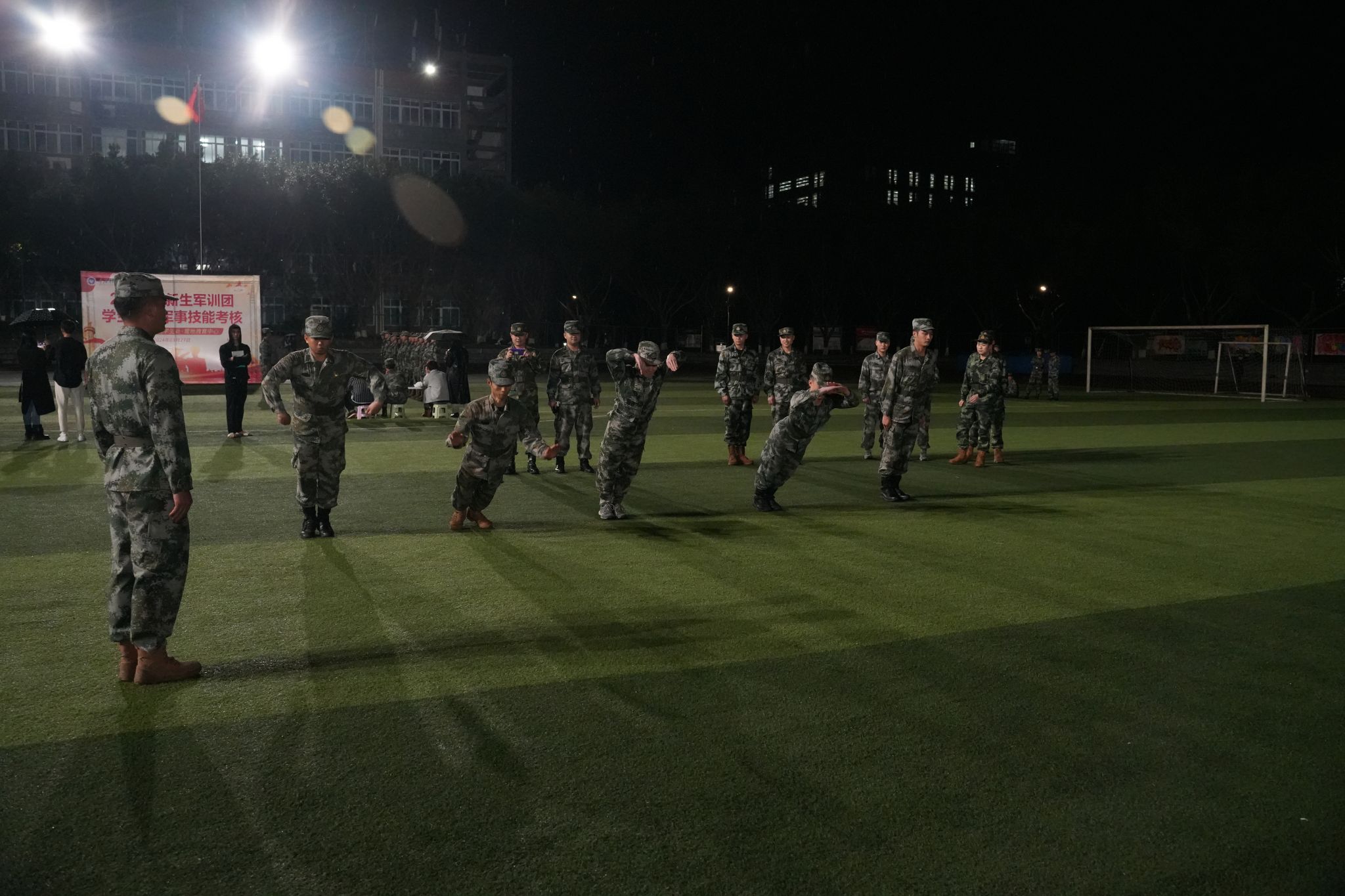 营地教育中心现有士官2名,退役特种兵及退伍军人5名,接受过军事专业训练教练6名,组成了专业军事化、专业化训练队伍。而特色的“淬炼”领导力课程2天2夜全封闭、军事化管理,拟在通过设定户外类、军事任务类场景,团队一起开展情景式、体验式培训。同时,为进一步推进2024级学生军训工作,做好学生军训教官选拔,结合营地教育中心淬炼领导力课程,贡献一份力量。2024年3月27日进行2024级新生军训团学生教官选拔及军事技能考核,在学校各专业退役复学的同学中选拔2024级新生军训教官。