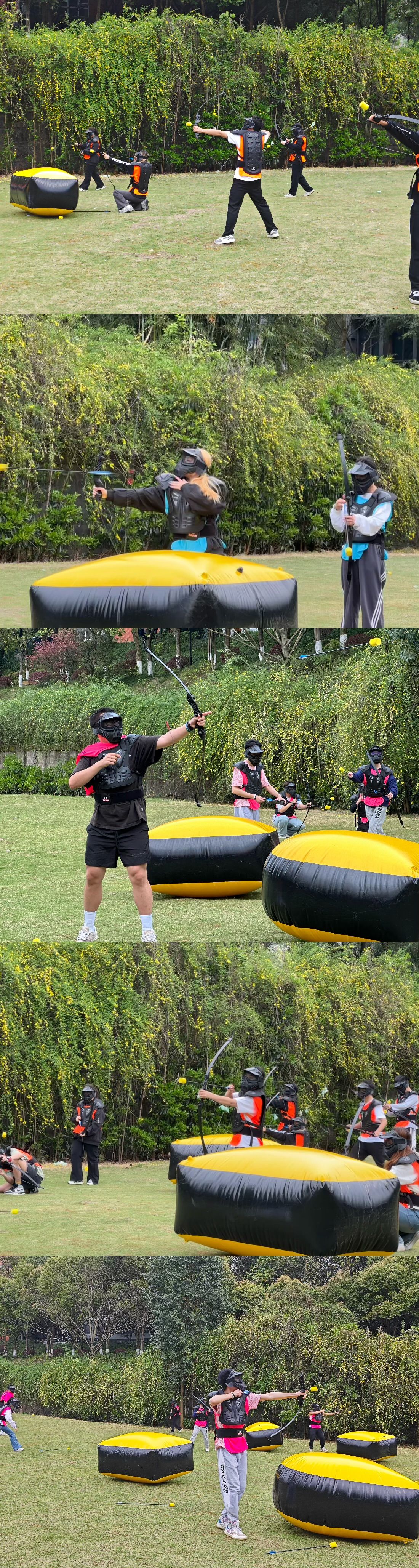 接下来便是今天的特色项目:攻防箭。营地教育中心教练为大家详细地讲解了射箭的基本知识和技巧,包括如何握弓、如何瞄准、如何穿戴护具等。随后,团队成员们按照教练的指导,直接进入比赛环节。