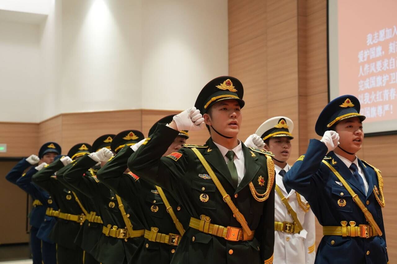 会上,国旗护卫队代表邹小彬带领队员们向队旗宣誓,誓言坚决捍卫国旗的尊严,矢志不渝地传承国旗护卫队的优良传统。紧接着,国旗护卫队队长杨沐衡发表了慷慨激昂的讲话,表达了全体队员的决心与信念。