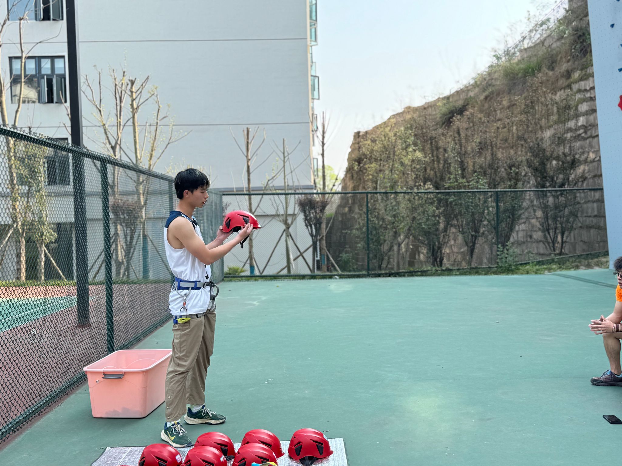 为进一步加强营地教育中心助教团的专业素养及自护能力,培养积极向上、团队协作的助教队伍,增强大家的凝聚力、向心力,创造温馨、和谐的助教团氛围。3月23日下午4点,营地教育中心的助教团成员在指导老师黄杜娟的带领下,校户外运动队队长喻正坤同学的精彩讲解中,系统地学习关于户外攀岩相关知识,掌握了技术装备的正确穿戴以及基础绳网布点的技巧,为助教团工作的顺利进行奠定了夯实的基础。