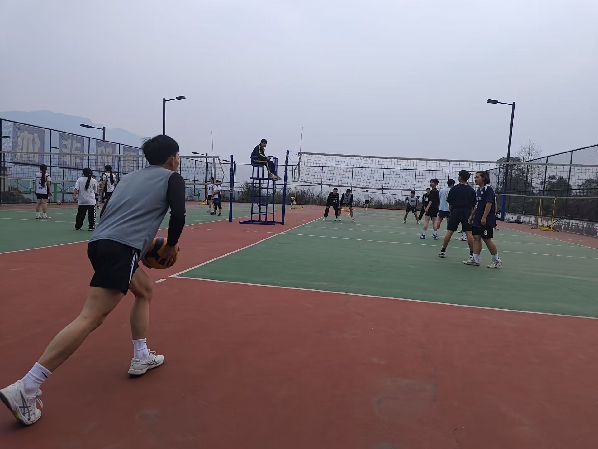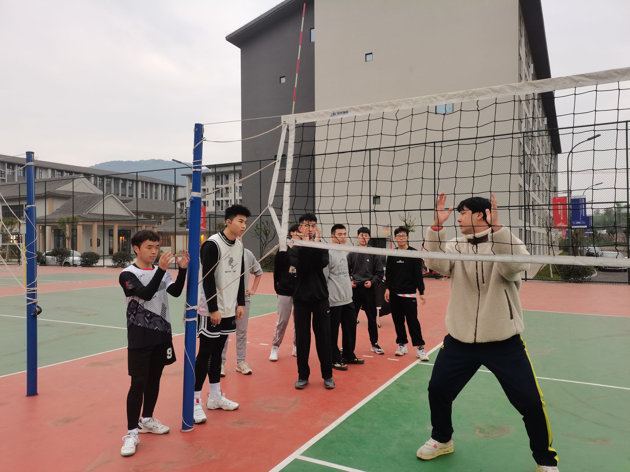 队员们只争朝夕的训练,用汗洒球场将排球精神阐述的淋漓尽致,一起的训练更是将不同学院的队员们连成一个集体,大家相互夸赞相互鼓励,用汗水述说着自己对于排球这项运动的热爱与激情,一次次的咬牙坚持,一次次的欢呼是如此的具有感染力,如此的振奋人心让人无法拒绝,团队的精神烙印在每位队员的心中,只有将自己和队员绑在一起才能真正的成为一个合格的团队集体