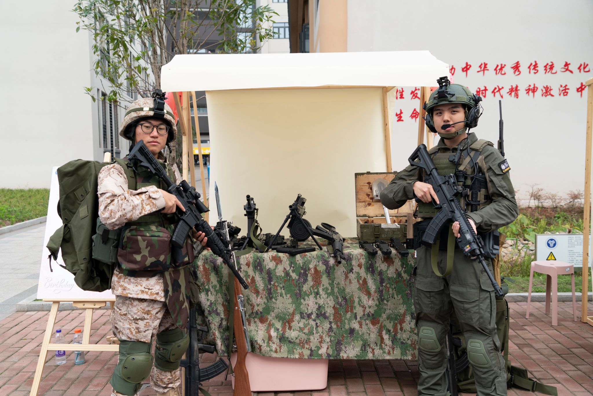 生日会中期,同学们享受着生日会上的美食与氛围,每个人脸上都洋溢着笑容,与此同时,也已有同学按捺不住心中的急迫,为迷彩的各类枪械所吸引,参观教具。在队员的指导下,同学们进行了正确的枪械持拿,如何瞄准,这些模型不仅精致逼真,更富有教育意义俱乐部成员们热情地为参观的师生讲解每一件展品的历史和用途,让大家对军事装备有了更深地了解。
