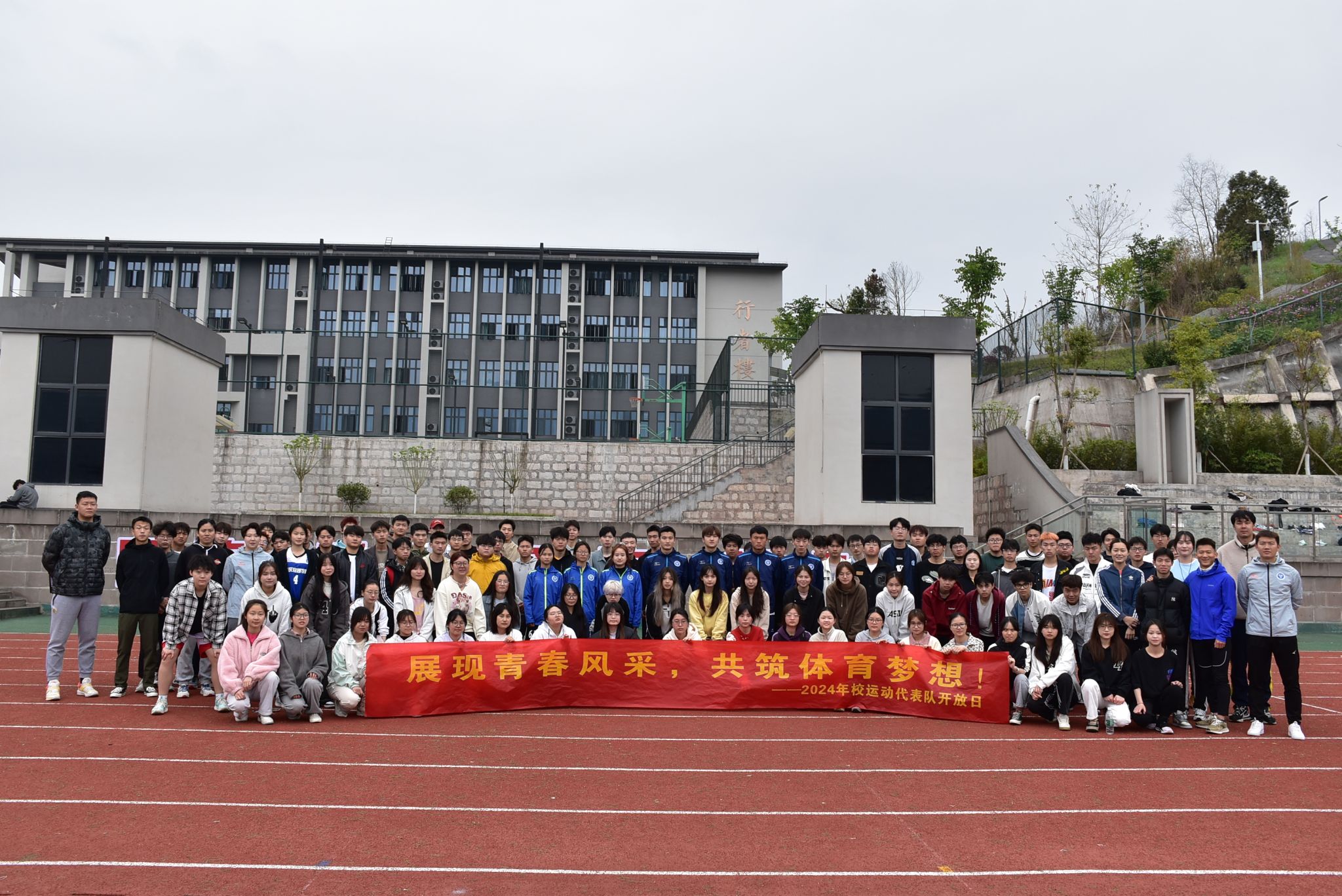 上午十点,各学院学生代表陆续赶往田径场集合,进行合影留念。随后,大家分赴各个场地,亲身感受校队的魅力。