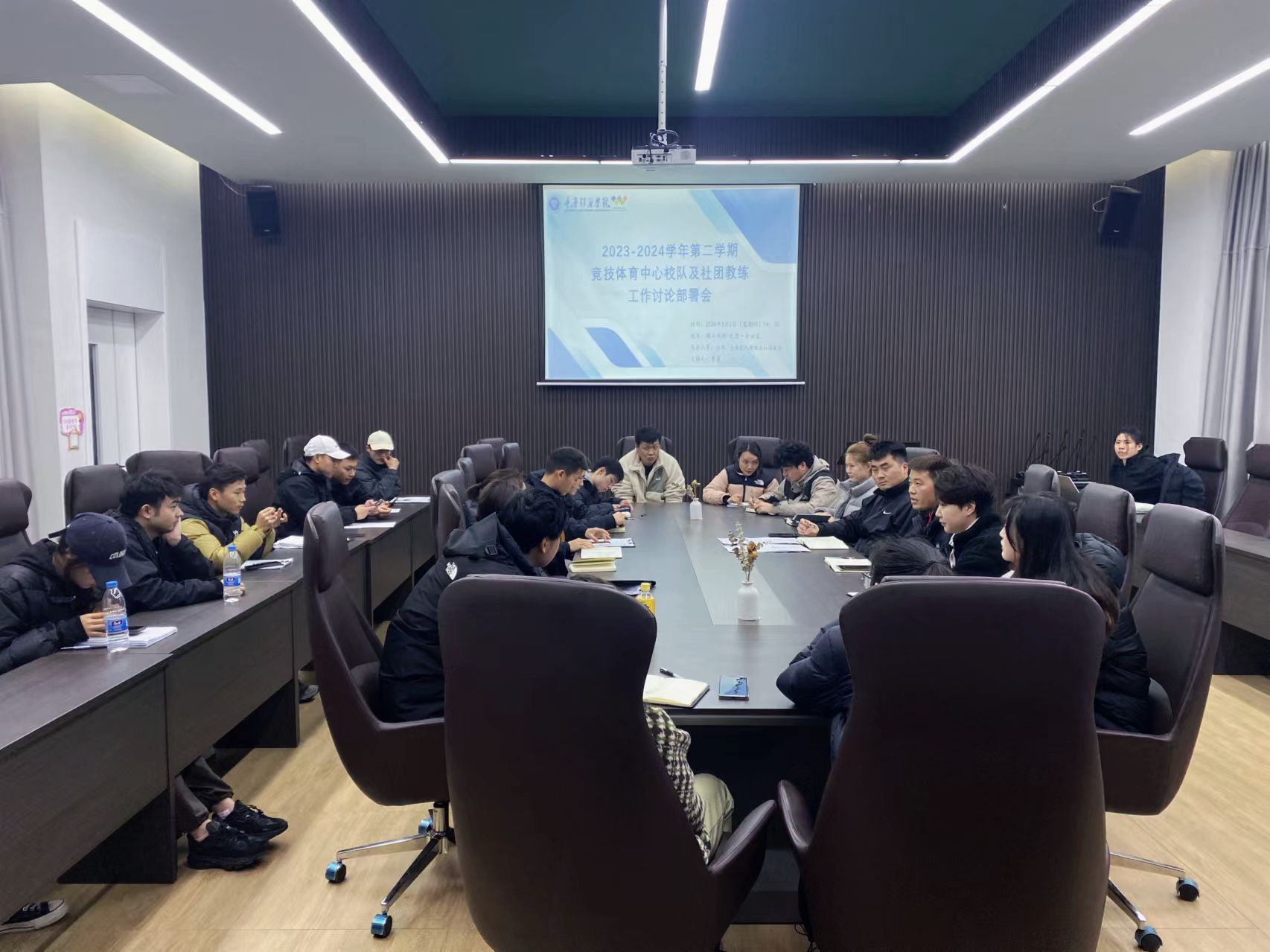 2024年3月7日下午,竞技体育中心在横山书院一九思·会议室召开2023-2024学年第二学期教练工作讨论部署会,听取各教练团队训练、社团工作汇报,安排部署本学期教练重点工作,共同为学生成长和发展献计献策。竞技体育中心江华主任、全体校队教练及社团教练参加会议。