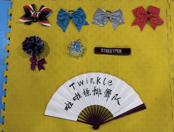第二站,则是带着同学们来到了我们的装备区。详细的为同学们讲解了每一件夫专辑配饰背后的比赛故事。这些服饰都承载着Twinkle的荣誉和汗水,看到它们,比赛的回忆便立刻涌上心头。