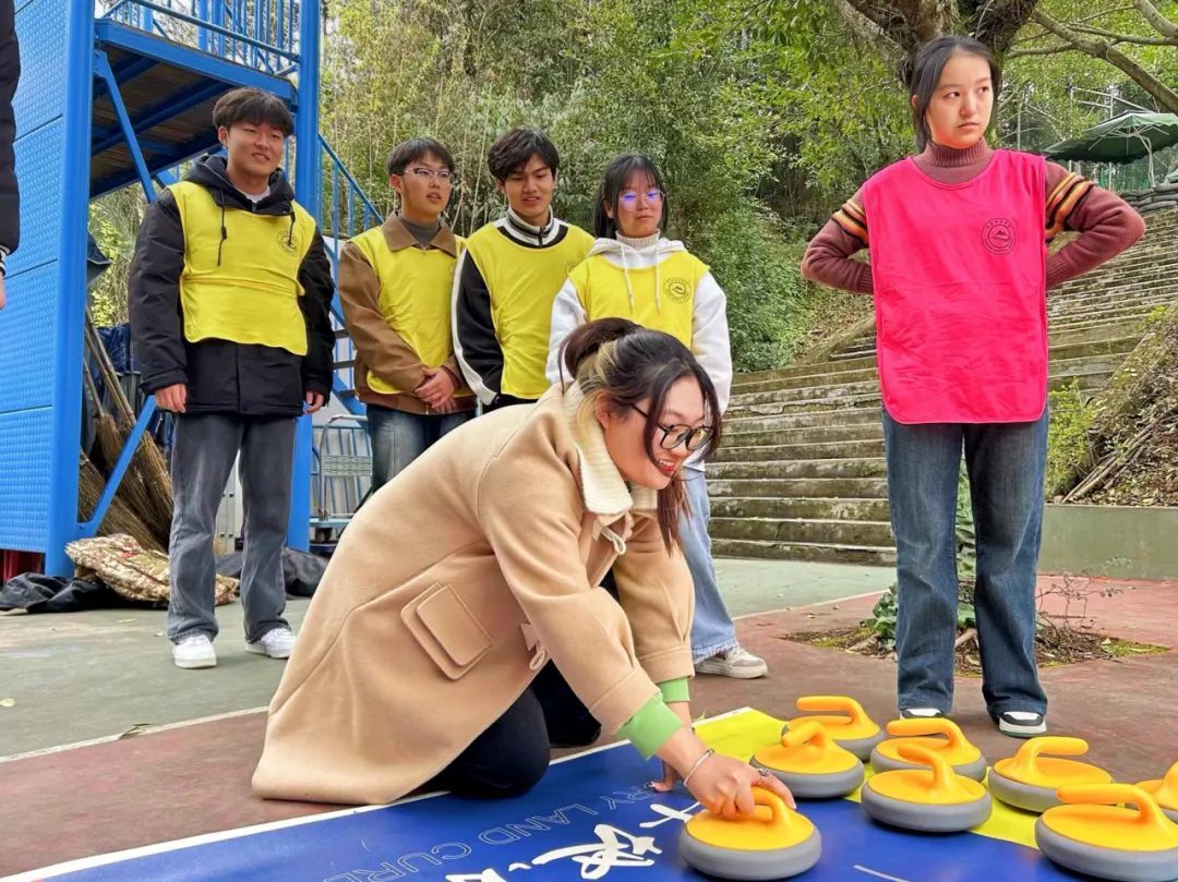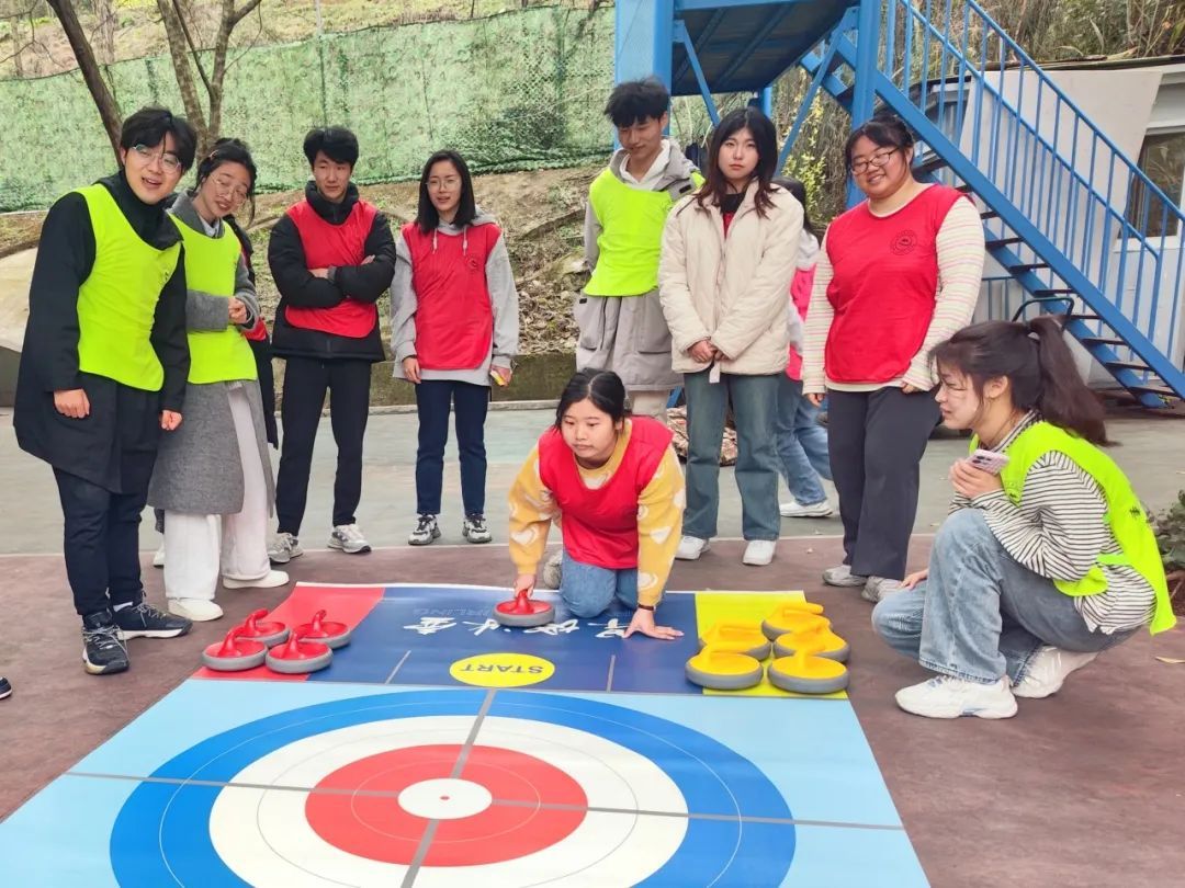 “旱地冰壶”项目将队伍分为两两PK,热烈的氛围将整个主题团建赋能活动推向了高潮。“奇迹”队在几轮游戏过后成为了本次活动的胜者,由花果书院综合办公室主任吴静老师为他们颁发奖品。