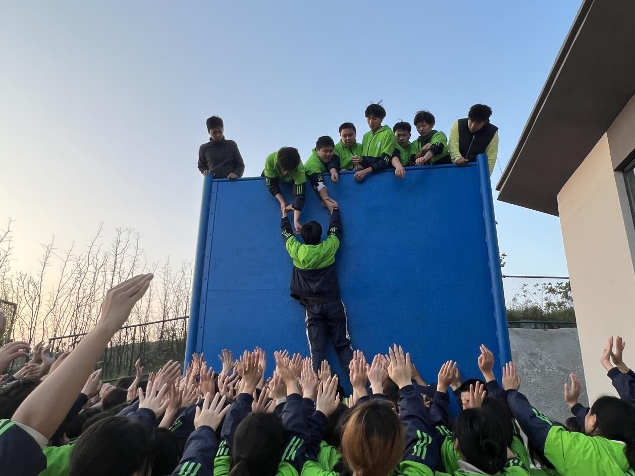 在“海难逃生墙”项目中,当我看到平时毫无关系的同学为我们共同的胜利在坚持做俯卧撑时;在甘愿做人梯时;在脸涨得通红还在拉人时,我内心很复杂的情绪在翻涌。我对平时看似有些幼稚的男生也有很大的改观,我感受到男生们身上的责任和担当,很感谢他们!
