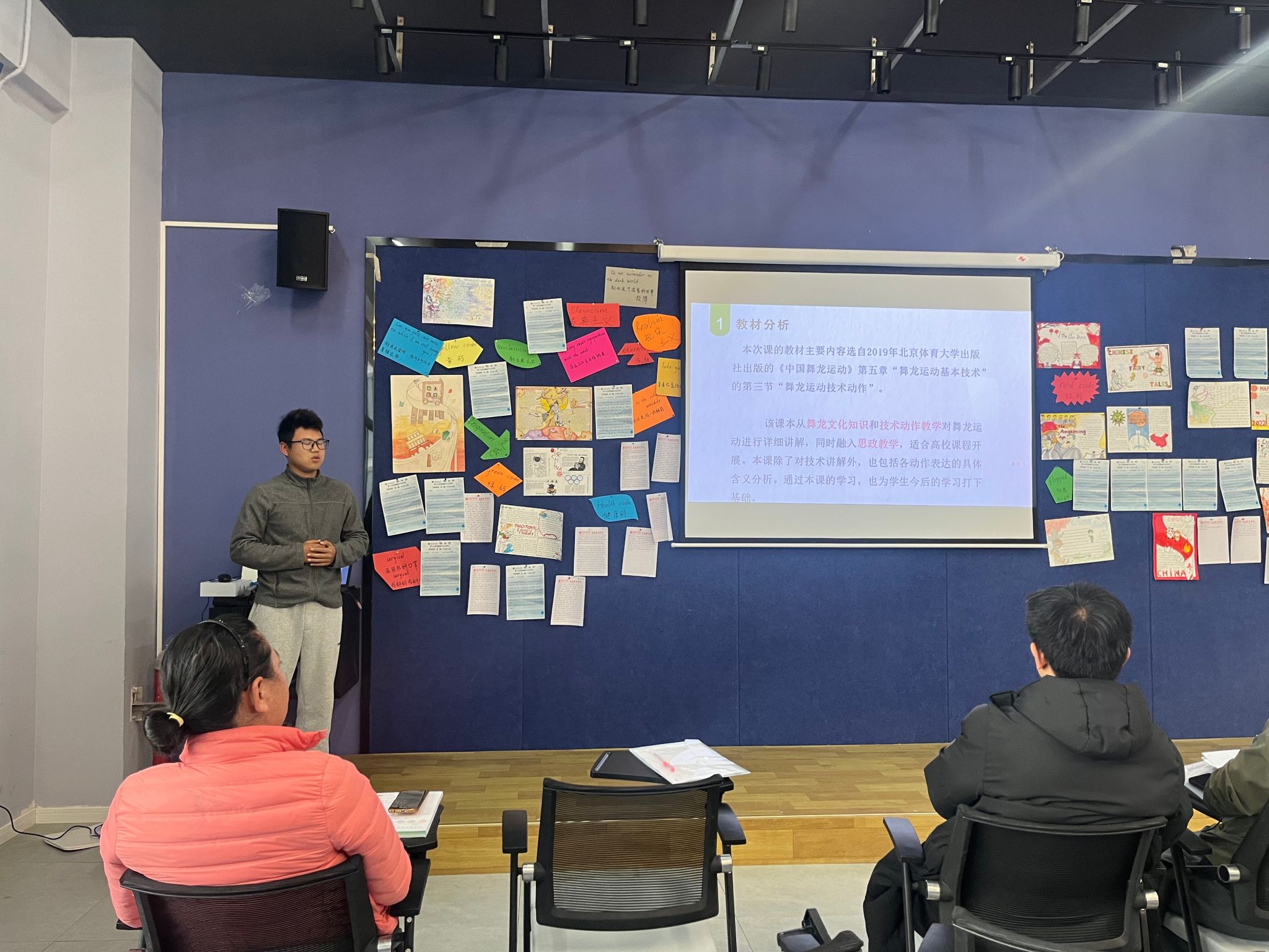 说课是教师钻研教材、探讨教学方法、实践教学手段,不断提高教师义务素质及教学水平的方法之一。我校綦江校区竞技体育中心体育教学部为促进教师的专业发展,提高各教师的业务素质和教学水平,从而促进“以体育人的教学式育人工作”的深度推进,于12月13日成功举办了以“以赛促教,以赛促学,以赛促改”为主题的说课比赛,本次比赛分为初赛和决赛环节,初赛在各教研小组组内进行,按照评分标准决出小组前四名进入决赛。决赛阶段由竞技体育中心曹杰老师主持,华玲老师记录,并特邀教学督导实训中心郭爽副主任、竞技体育中心江华副主任、刘莎莎副教授、胡垚老师作为专业评审小组,通过既定评分标准按照得分高低决出一等奖一名、二等奖两名、三等奖三名、参与奖若干。