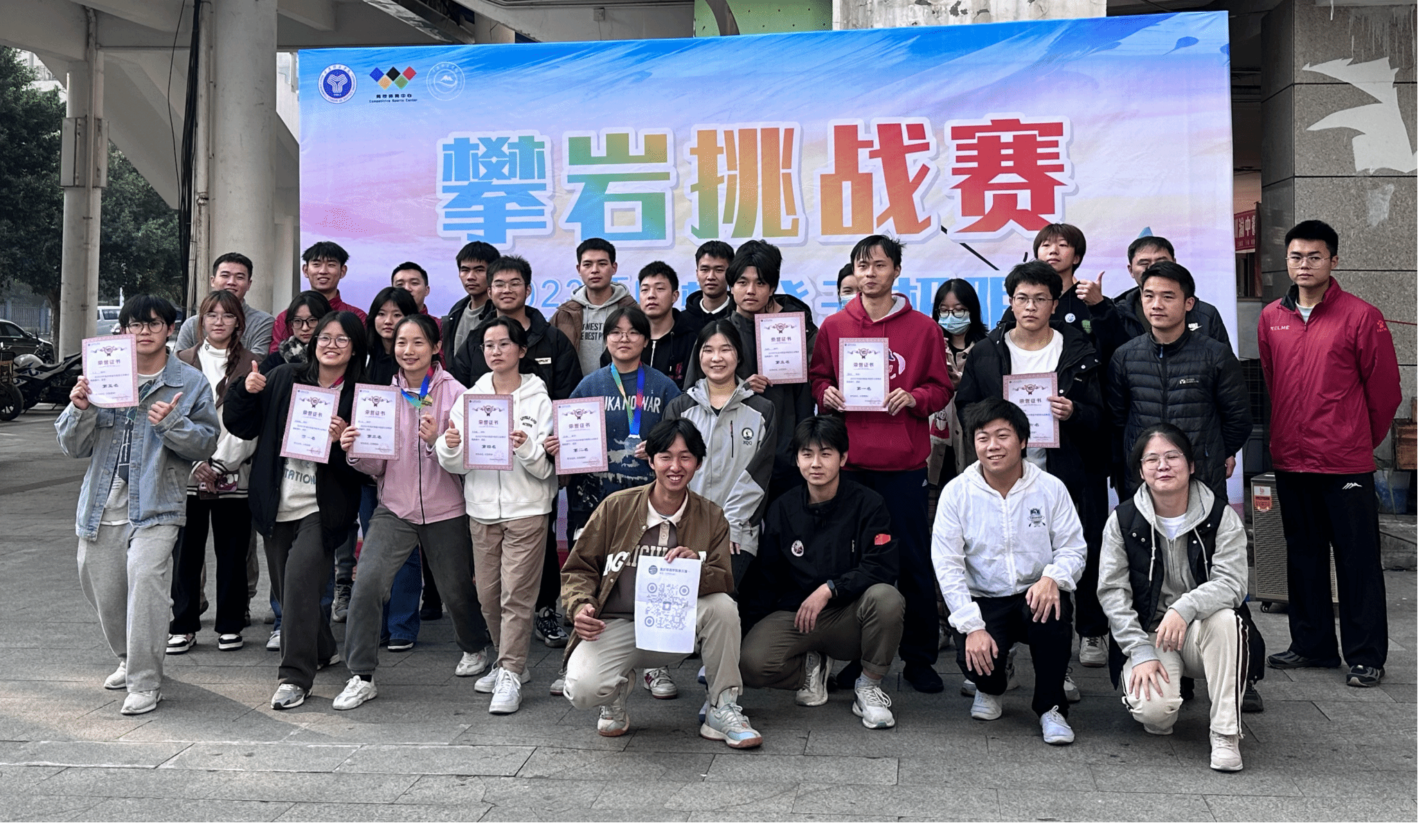 闭幕式结束后大家进行合影留念,在照片定格的那一瞬间我们相信这场比赛不仅是一次体育盛会,更是对攀岩运动的推广与发展。这样的活动将为更多学生提供机会去探索攀岩的魅力,并在挑战中发现自己的潜能。