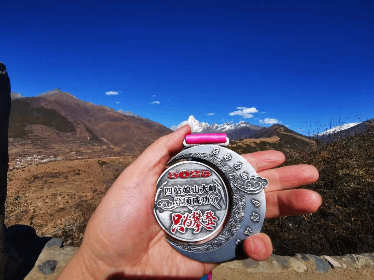2023年12月3日上午7点09分,重庆移通学院綦江校区户外运动队队员罗诗琪同学成功登顶四姑娘山大峰,海拔5025m。