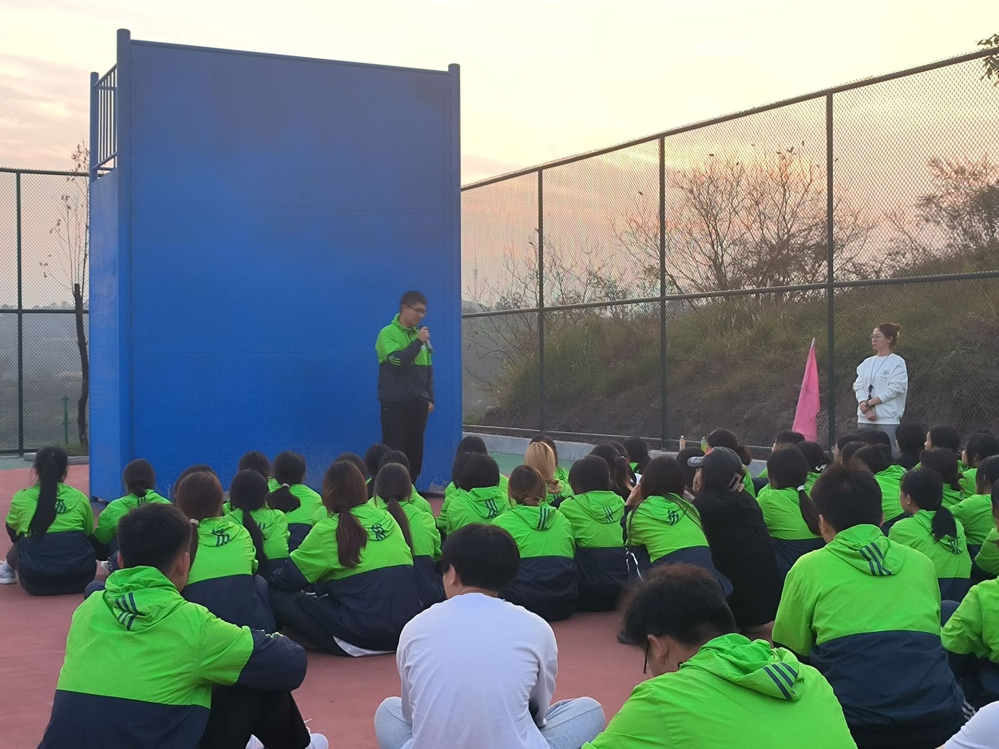 与传统的学校教育不同,营地教育拓展训练课程更注重培养大学生的个性和社会能力。在一个开放、多元化的环境中,同学们能够更好地认识、发现自己,并且融入集体。课程开始时,黄杜娟教练向97名同学讲解了营地教育拓展训练课程的一些规则及其分组。随后,同学们参与了一系列富有挑战性的户外课程,如攀岩、逃生墙等。