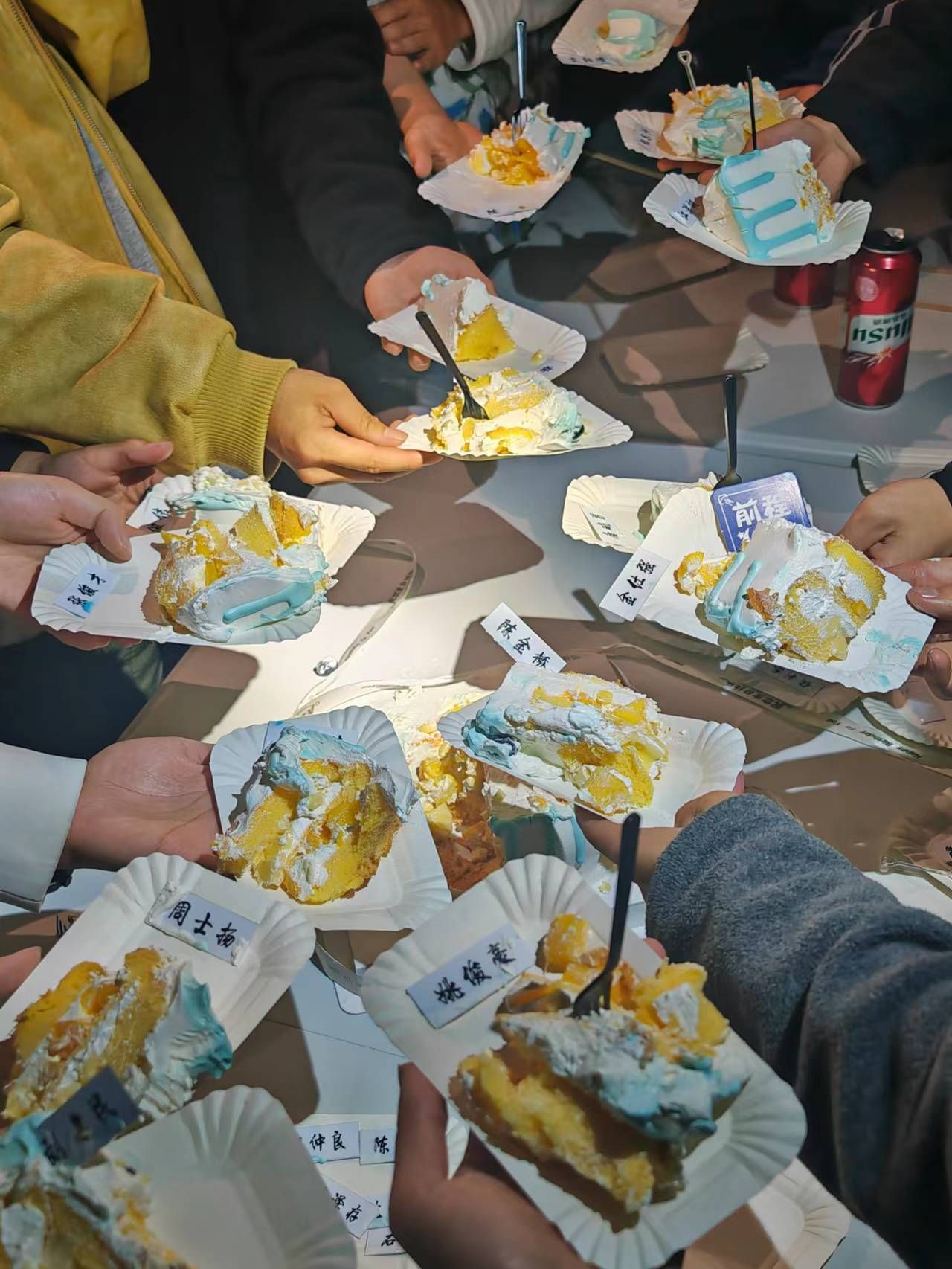全员嗨歌,唱响黑夜。为了让晚会更加丰富多彩,还加入了唱歌环节。队员们纷纷展示了自己的歌唱才华,用美妙的歌声表达了对团队的热爱和祝福。最后,大家一起吃了特制的蛋糕,上面有每一位队员的姓名,这一环节不仅让队员们更加放松和愉悦,还进一步增强了团队之间的默契和凝聚力。