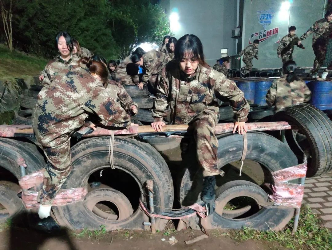 音乐响起,训练开始!在整条障碍跑道上,布满各种阻碍,需要体力意志的匍匐前进、鸭子步、钻轮胎,需要团队协作的举木头、搬轮胎……很快,沉默的场地上响起了同学们相互加油打气的声音,一阵高过一阵,甚至盖过了音乐的声音,教练也在一边为同学们加油打气。在接近尾声时,团队里已经跑完的同学主动为尚未完成的同学代跑,大家一起挑战自己的极限,享受着这个年纪应该有的疯狂与快乐。