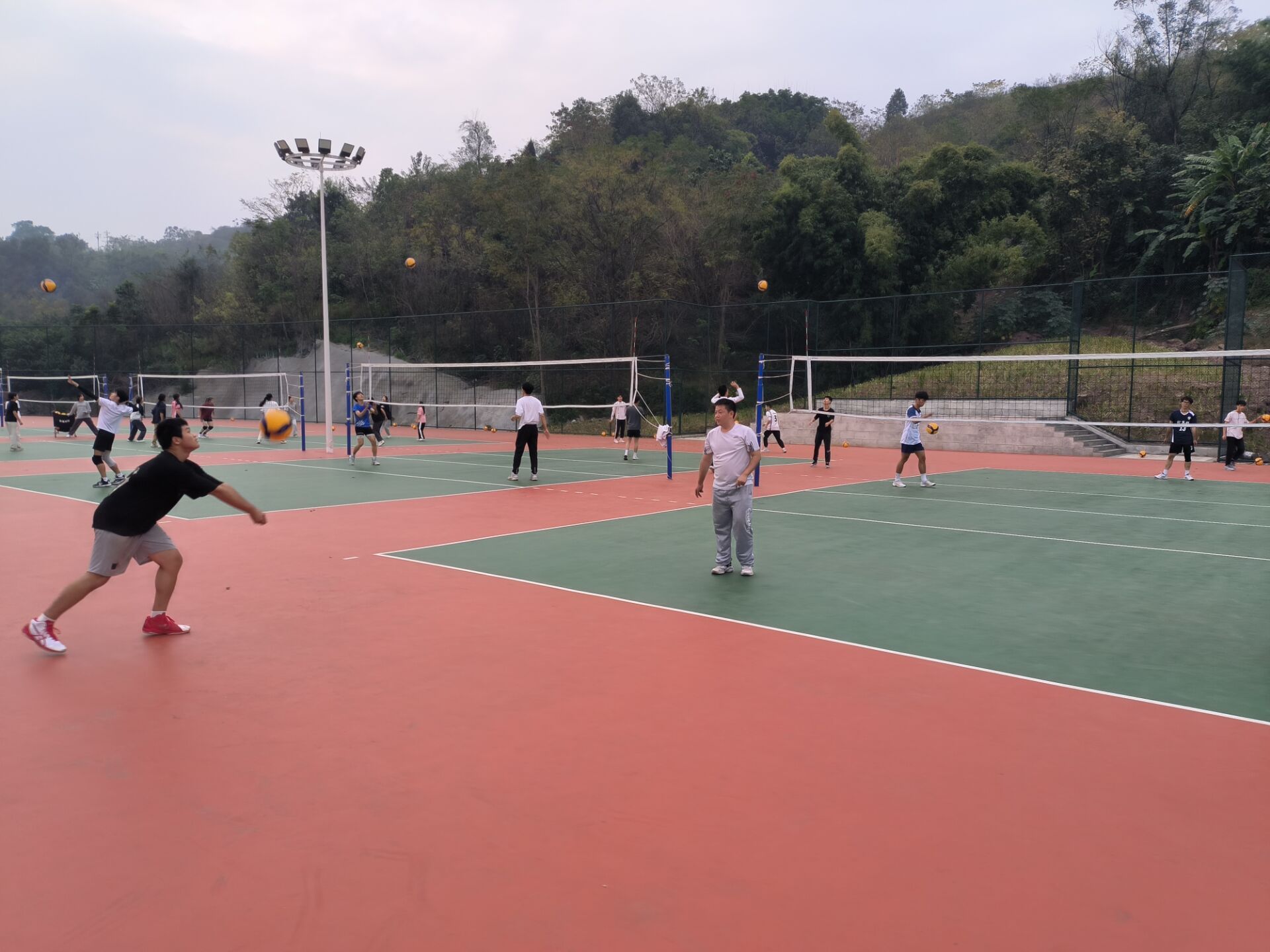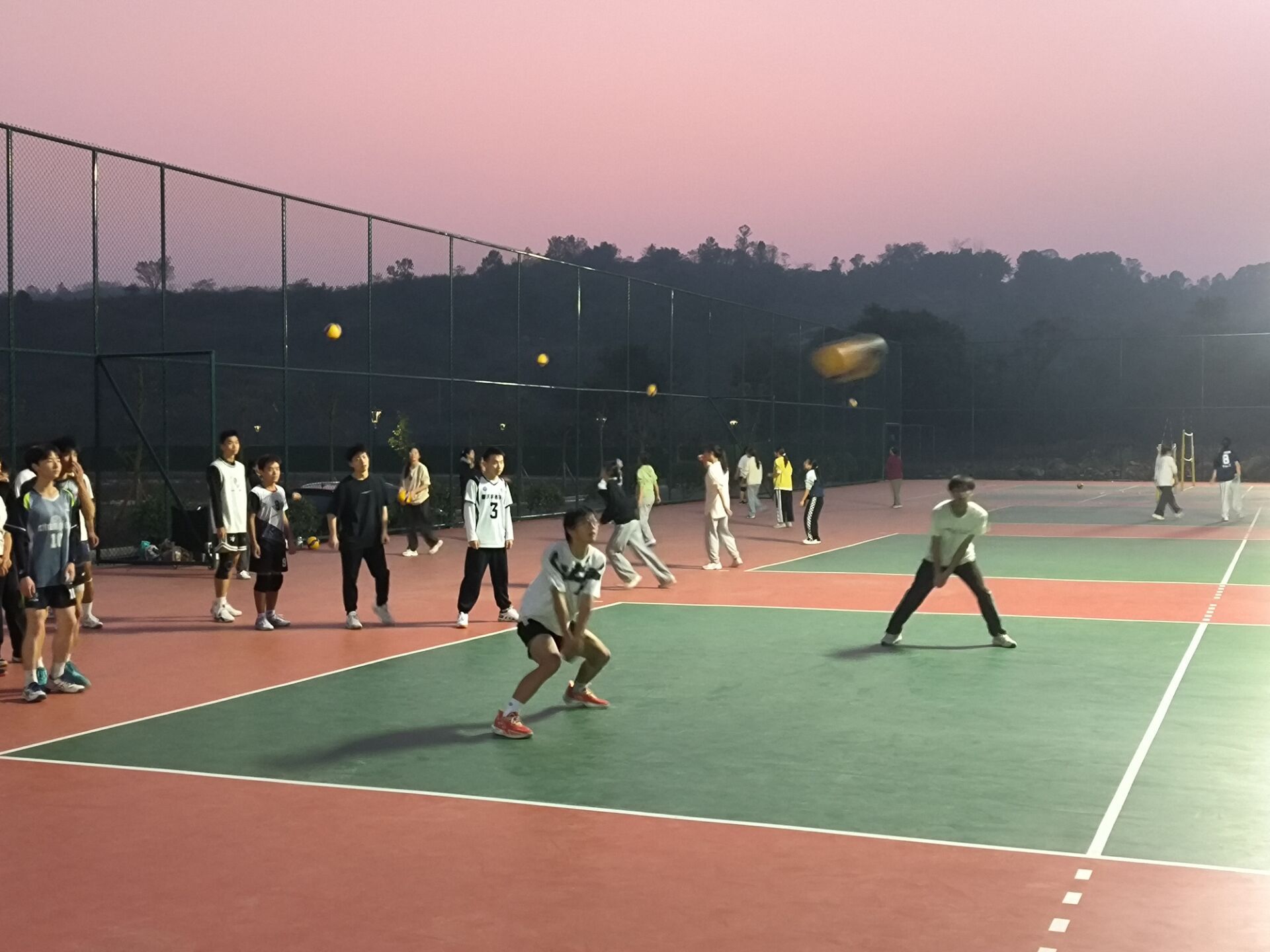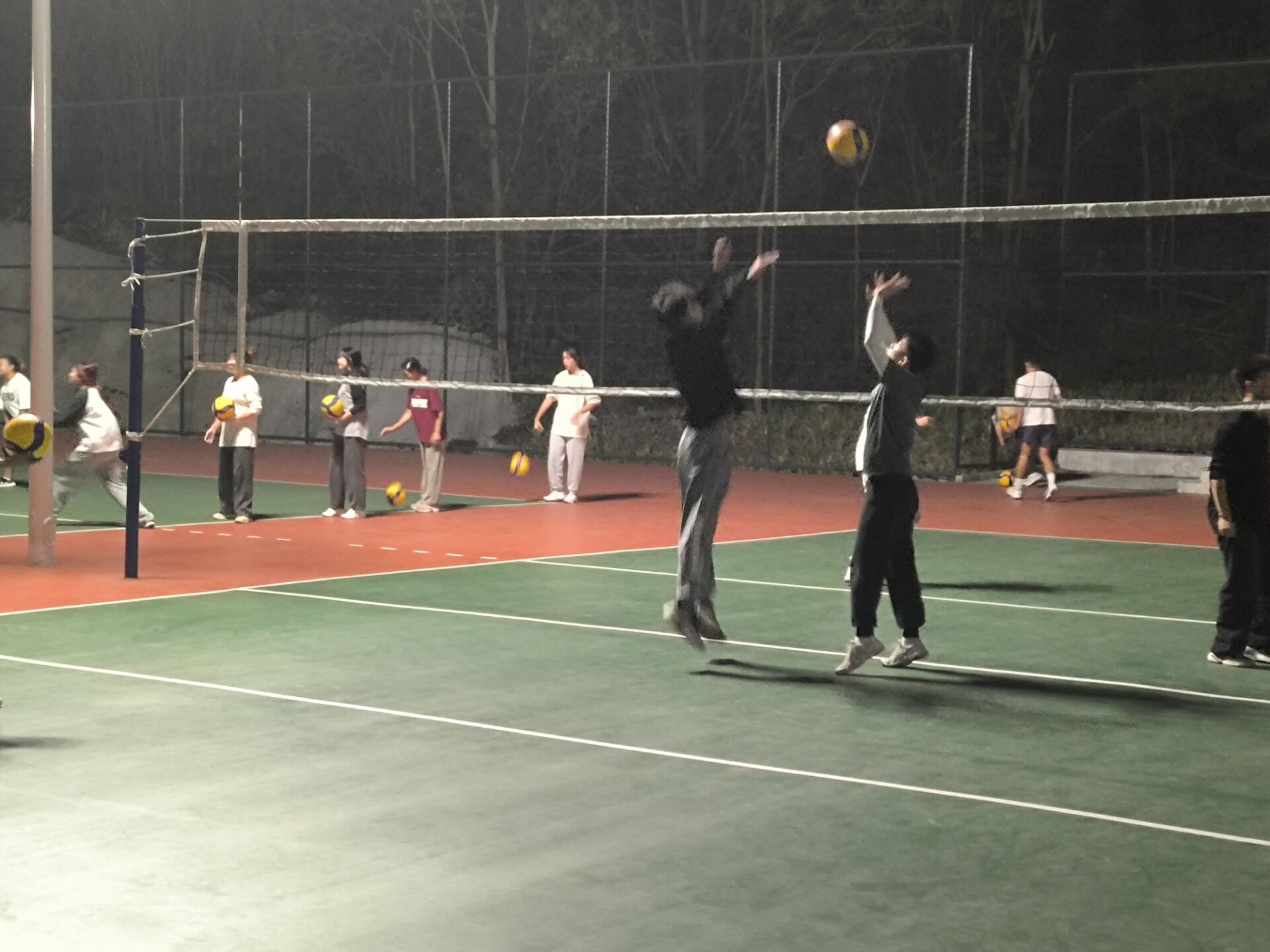2023年11月20日星期一,我们进行了跑动垫球对抗赛,输的那个小组要做波比跳20个,既帮助大家找回球感也提升了大家对排球的热情;之后进行了教练扣球,两人一接一传再一扣的训练活动,大家认真对待丝毫不懈怠,即使打飞了或没有配合起来,同学们立马重新排队再次迎战。