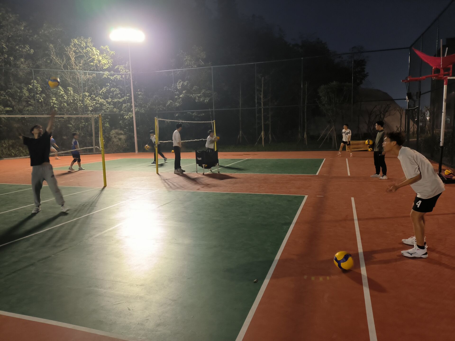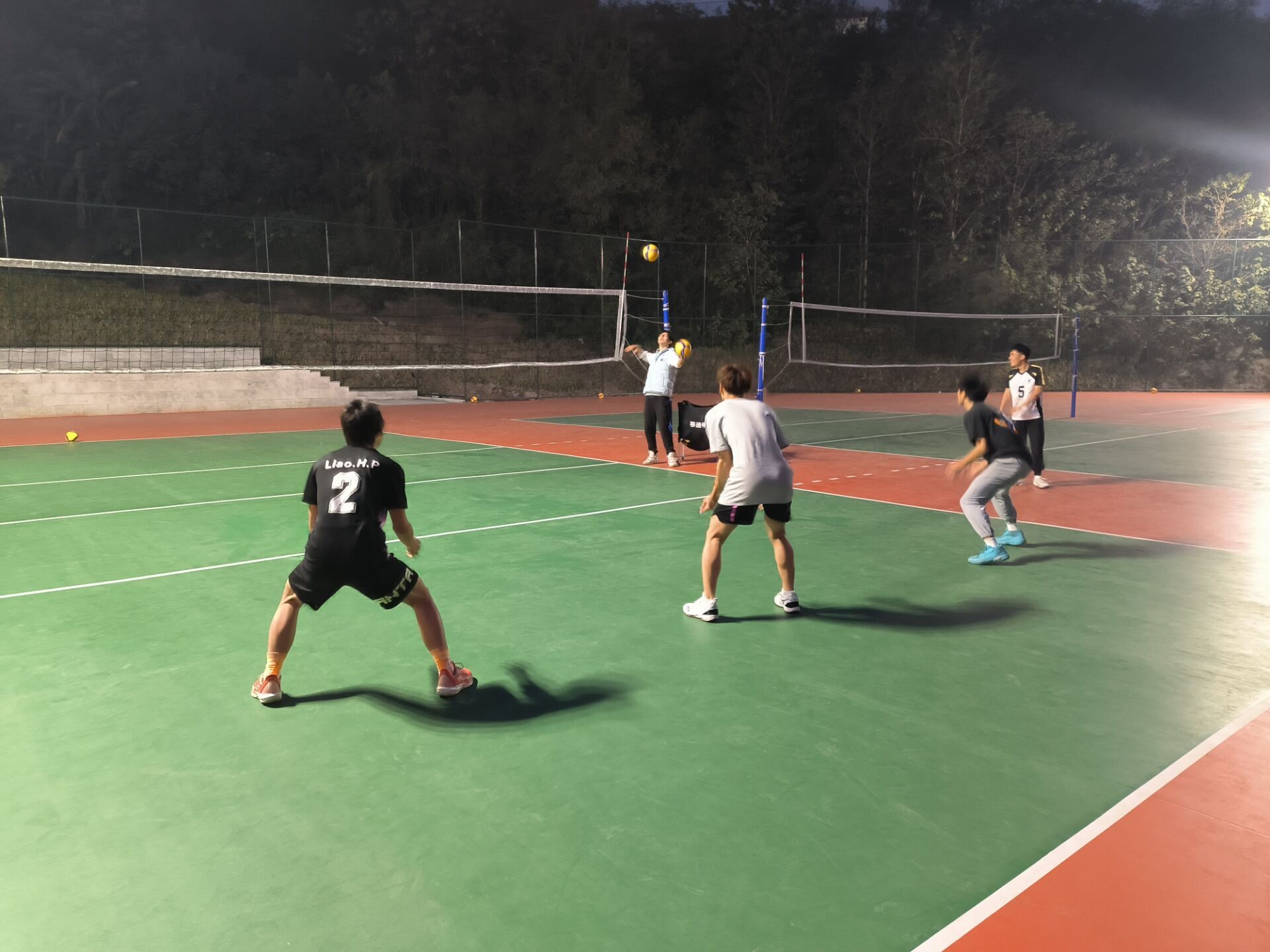 2023年11月23日星期四,我们练习了三人打防传的训练内容,一个人发球另外一个人接到二传的位置再由二传传给发球手;练习了一会儿,我们就开始下一项,教练扣球我们组织进攻,可以全方位练习到每一个基础,十分有意义。