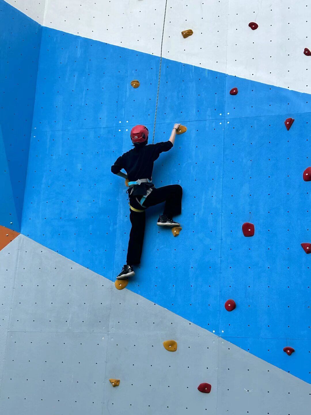 攀岩令我印象非常深刻,它让我真正体会到没有人能一步到达山顶、顶峰,都是一步一个脚印,不管前路有多崎岖,但世上无难事,只要肯攀登!对此我有三个感悟:第一,不断向前看。攀岩是一项需要专注地运动,眼睛要一直向上看去观察下一个落脚点,就像我们人生的目标一样;第二,自我突破。在整个过程中,体力逐渐消耗,这时就需要我们去坚持,突破自己的极限;第三,勇敢。对于恐高的我,在面对高度和不确定性时,我还是在队友的支持下鼓足勇气完成了它。