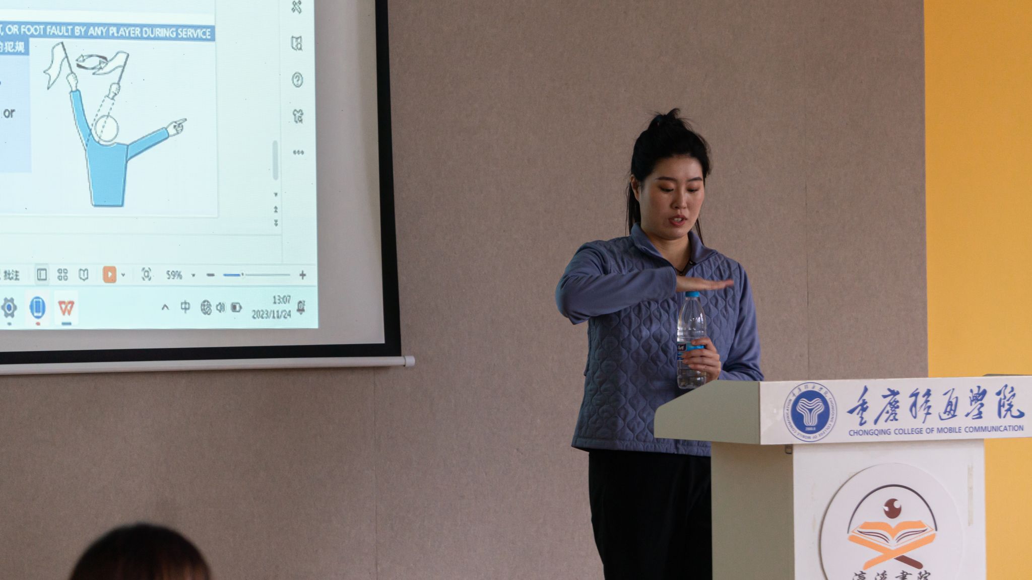 在这次培训活动中,我们非常荣幸邀请到了合川校区校男子排球教练李雅琪来为我们的学员们提供专业的指导和培训。李雅琪老师图文并茂,从最基础的排球规则讲到比赛当中专业的手势,面面俱到,十分细致地讲解了场上所有裁判员地职责以及相关手势,使参加培训的裁判们更深入地了解排球执裁工作。