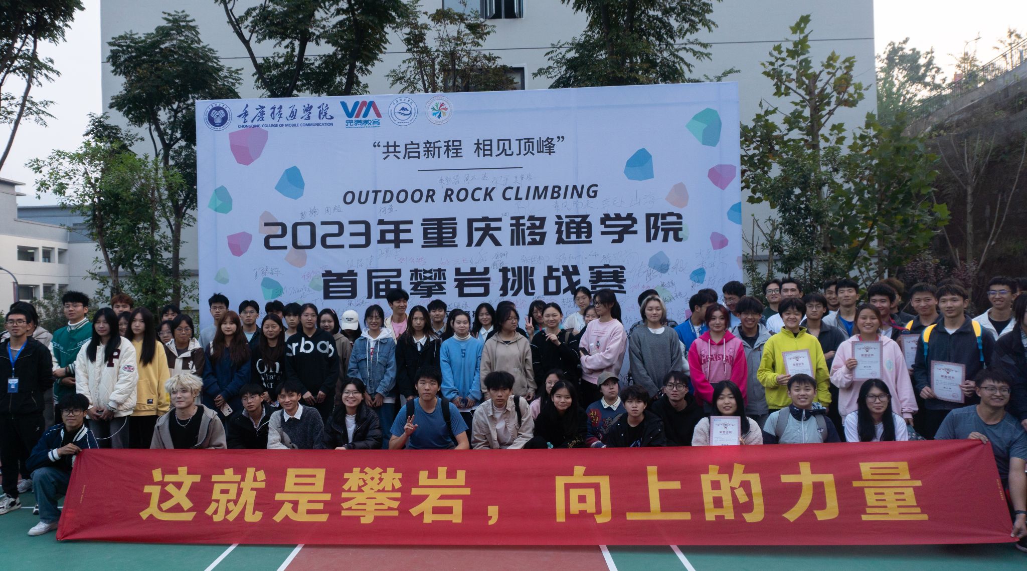 秉持对攀岩运动的热爱,移通学子齐聚一堂。于此初冬,攀岩这项运动不仅教会我们勇敢、耐心和决心,还让我们明白只有在逆境中迎难而上,才能攀登顶峰。攀登陡峭岩壁,需要不断超越自我,而这种攀岩精神也深深激励着我们。就算路途遥远,只要坚定前行,我们终将抵达成功的顶峰。无论是何种高峰,相信我们移通学子都勇于攀越、不屈不挠、敢于追求。