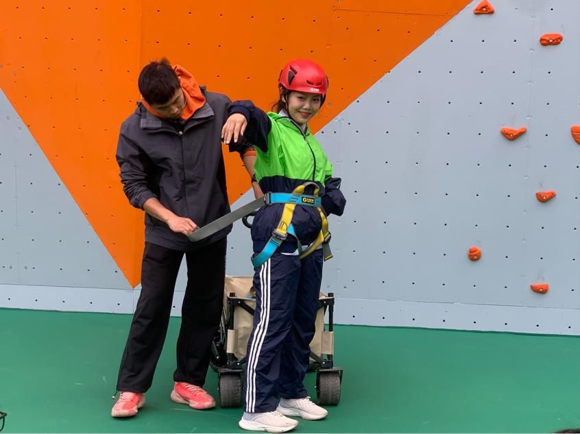 勇敢不在于能够蔑视困难,而在于认清困难、战胜苦难。本次营地教育拓展训练课程的高空项目为攀岩,这是一项极其考验勇气和耐力的运动,同学们跟随教练做好安全保护措施,依次挑战。攀岩旨在锻炼同学们面对生活面对困难的勇气,坚定决心,在突破中探索自我的潜能,在坚持不懈中获得成功。