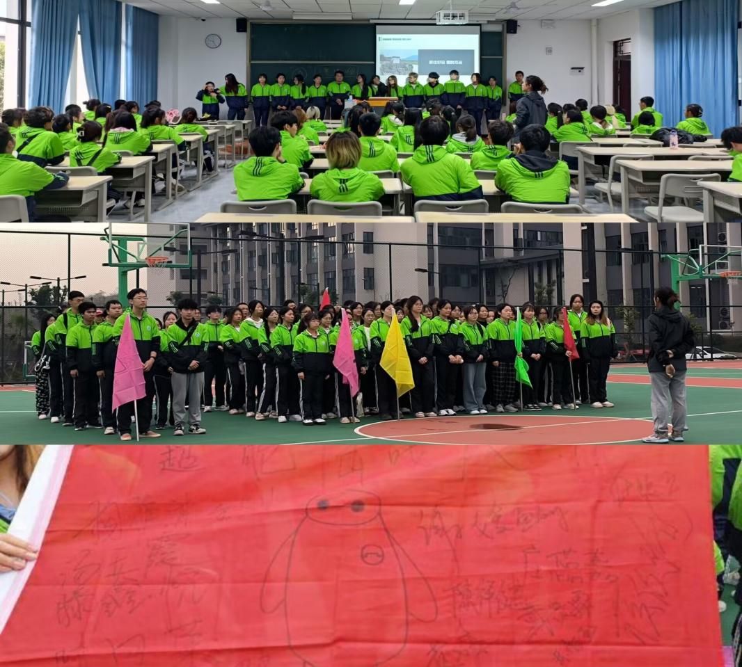 周一的清晨大家统一身着校服集合在图书馆前,进行“身份验证”,首先由宋洋教练将三个班级打散,组建新的队伍,各自为营形成六支小分队。接着,大家来到教室由王欣教练带领大家进行破冰,介绍什么是营地拓展训练课程,有哪些项目构成,进行营地拓展训练能收获什么等。破冰课程结束后各个小队开始团队文化建设,队名、队徽、队歌、口号、队形等在各自的队旗上进行创作。各小队队员在这个过程中各抒己见、分享着自己对于队旗制作的想法这也让后来的团队展示奠定了基础。
