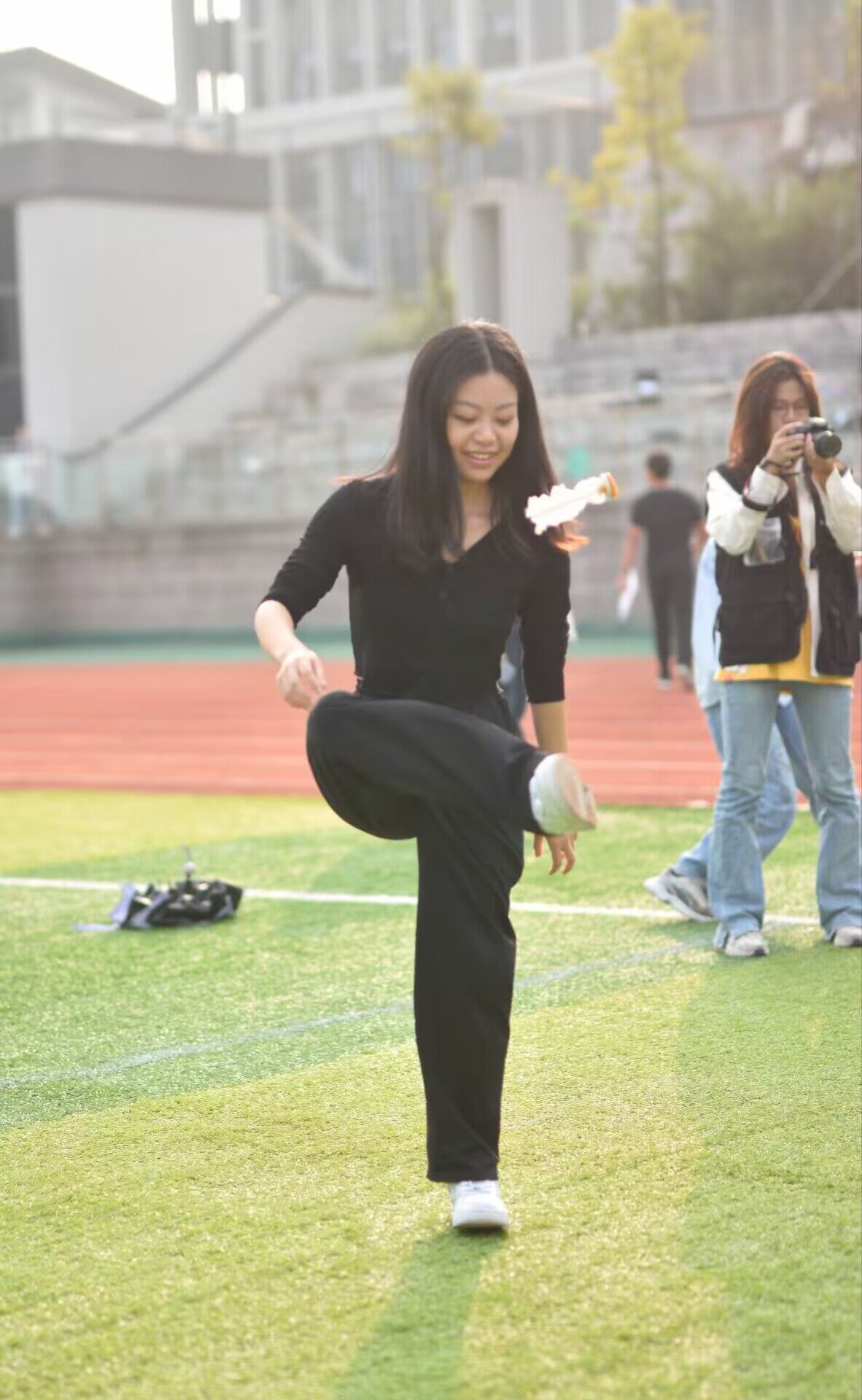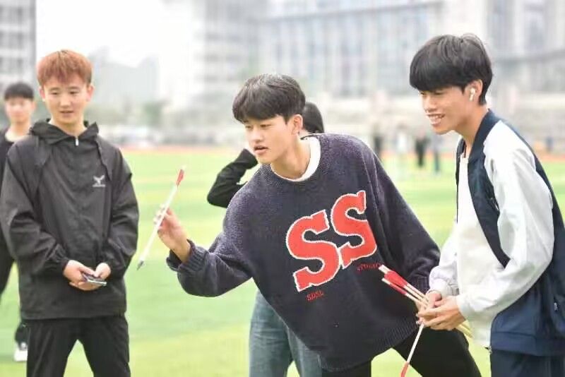 本次毽球争霸赛与长绳项目,大家已经耳熟能详。比赛一开始,毽球争霸赛的选手们就立刻抛出毽子奋力地踢了起来。只见现场毽子上下翻飞,如同一只只蝴蝶飞来飞去,场面甚是壮观。毽子与鞋子碰撞声和围观群众的喝彩叫好声交织在一起,整个比赛过程紧张有序又其乐融融。长绳比赛过程中摇绳和跳绳的选手相当默契,犹如闲庭信步,几乎没有磕绊,有的跳转腾挪,犹如飞火流星。看得场外观众惊叹不已,不约而同地为其数着个数,呐喊助威。听着场外的呐喊声,选手们更是意气风发,他们以一个个轻盈腾跃的姿势勾勒青春的活力,以一圈圈有力的挥舞奏响律动的线谱。