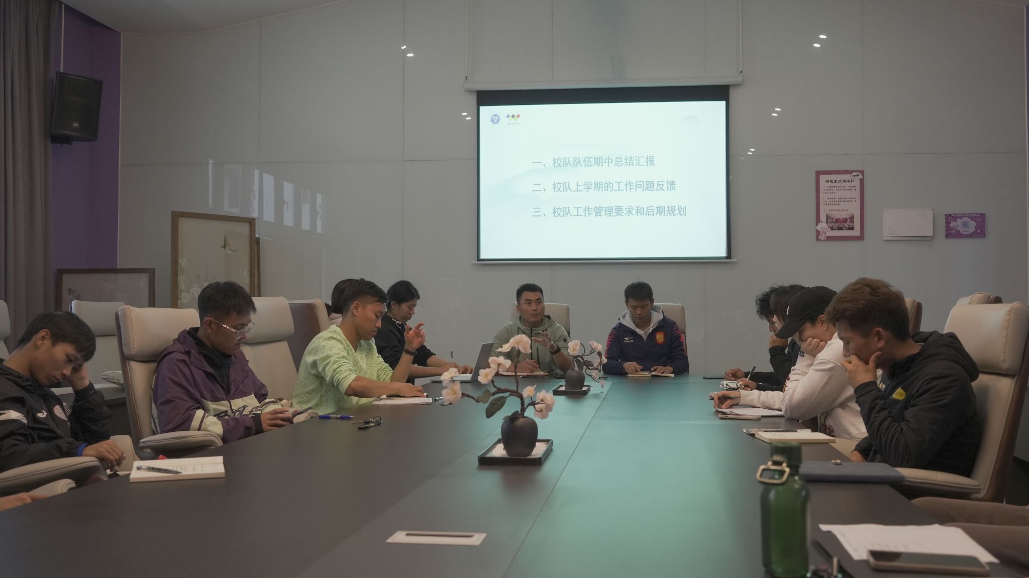 2023年11月8日,2023-2024学年第一学期竞技体育校队期中总结会在江华主任的主持下于观云书院小雪会议室如期举行。本次会议对各校队前半学期的教学训练成果和相关工作问题进行了回顾总结,并由此展望未来的规划。