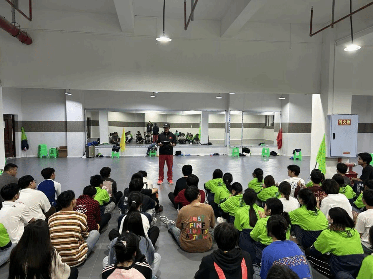 在首次集合时,段超教练向同学们讲解营地教育的宗旨和价值:营地教育是一种让同学们在户外以团队形式进行的教育活动,目的是培养同学们在领导力、团队协作、团队沟通等方面的能力,帮助同学们在身心、人际和精神方面达到全面发展。
