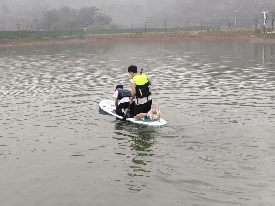 下午我们进行了桨板项目,几乎所有人都是第一次接触桨板运动,甚至有的同学本身就怕水,但是在练习的时候还是勇敢地克服自身恐惧,相互鼓励完成了这项挑战。在后面的比拼环节,让我感悟最深的是,水很凉,但没有人退缩,大家都竭尽全力,想要拿第一,即使雨越下越大也根本浇不灭大家的热情,还有队员一直泡在水中,保护我们靠岸时的安全,这一刻,我们是一个真正的团队。