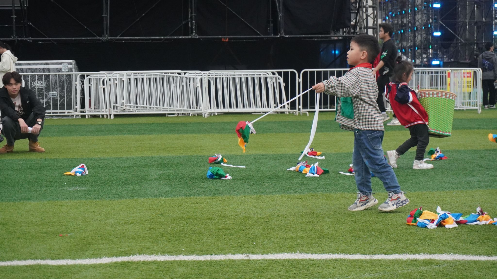 运动场上最引人注目的是飞盘九宫格与传统民俗项目体验。飞盘九宫格比赛开始,市民们站在起点线上,一个接一个地投掷,飞盘在空中画出一道道优美的弧线,现场观众的目光,紧紧地追随着腾空出去的飞盘,选手也屏住呼吸,只看见一个个在空中旋转的飞盘,有的准确的落入了九宫格的格子中,有的飞向了更远的“舞台”。传统民俗项目体验又分为三人板鞋竞速,抛绣球,踢毽子,滚铁环四个活动。在脚步的一次次蹬起中,在尽情的奔跑中,在团队默契配合中,体会那些藏在民俗文化中的人文情怀。